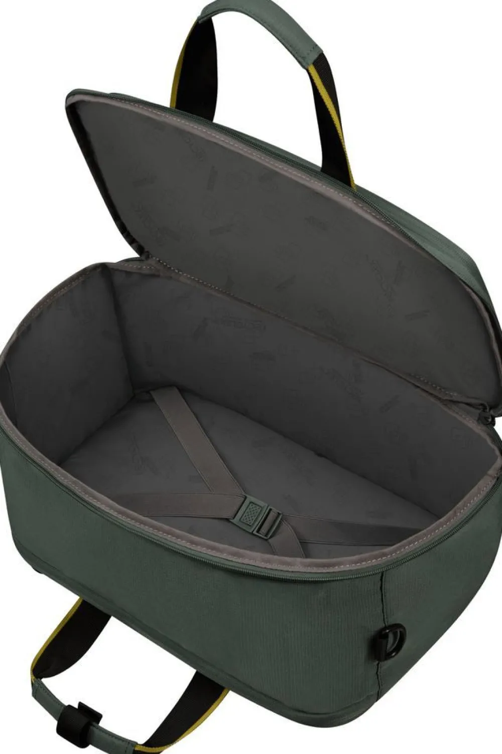Borsa cabina zaino 40x20x25 American Tourister Take2Cabin. Borsa cabina realizzata in robusto poliestere riciclato, ampia tasca principale chiusa da zip con nastri per bloccare l’abbigliamento. Tasca frontale chiusa da zip, tracolla amovibile, passante asta trolley posteriore per bloccare la borsa al bagaglio principale. Garanzia 2 anni.