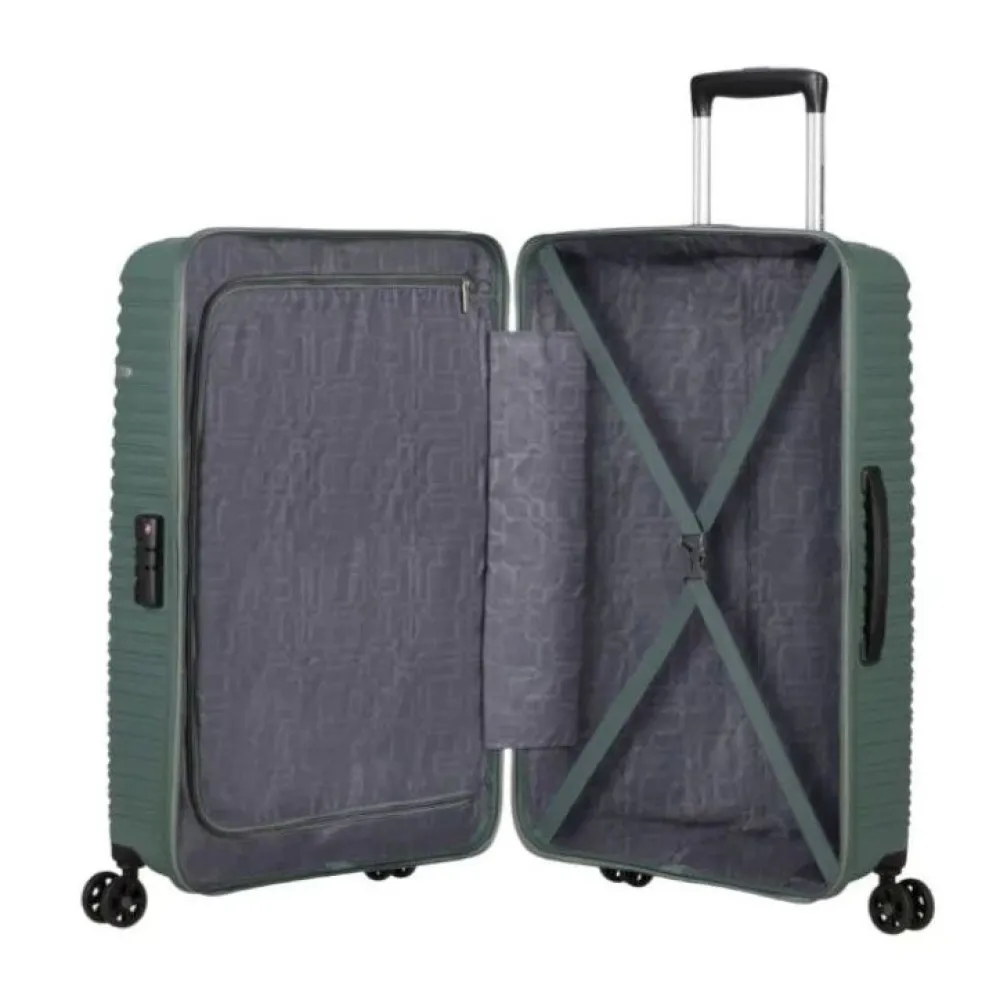 Trolley cabina American Tourister Liftoff. Trolley cabina realizzato in robusto polipropilene, quattro grandi e silenziose ruote piroettanti, zip di chiusura con sistema di sicurezza a tripla combinazione e TSA per gli Stati Uniti. Carrello di traino regolabile in altezza con push botton. Interno completamente foderato, con nastri per bloccare l’abbigliamento e divisorio. Garanzia 2 anni. Misura ideale come bagaglio a mano aereo.