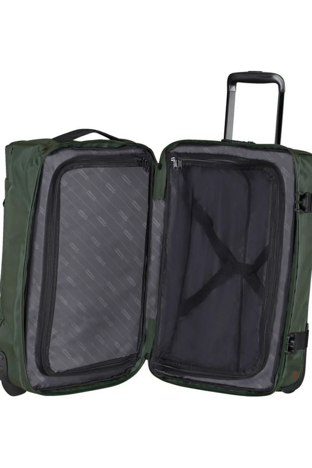 Trolley cabina American Tourister Urban Track. Realizzato in robusto poliestere riciclato, con asta di traino telescopica con push button, ampia tasca principale chiusa da zip con due comparti principali interni completamente divisi. Doppia maniglia anteriore e maniglia di servizio superiore. Sistema di chiusura a tripla combinazione TSA integrato. Slitte di rinforzo posteriori. Nastri di compressione laterali. Garanzia 3 anni.