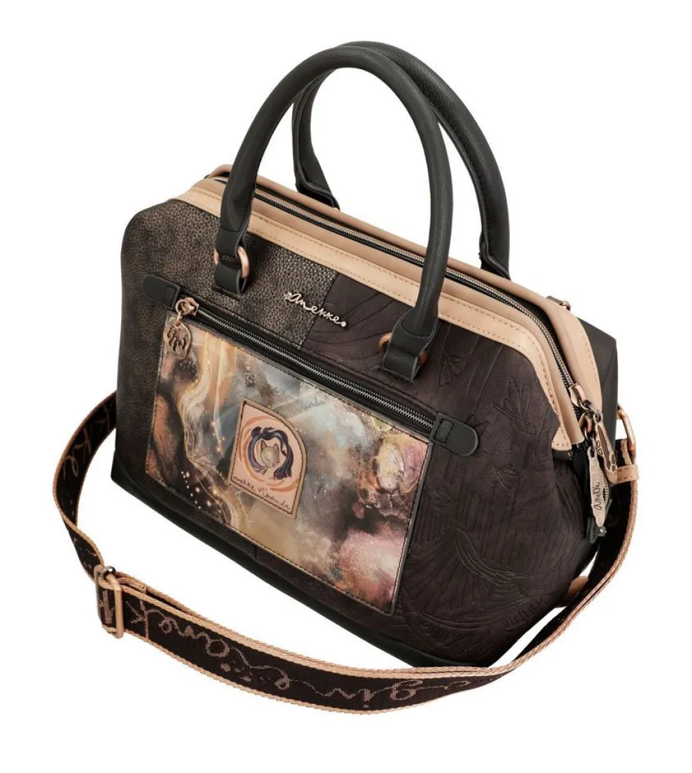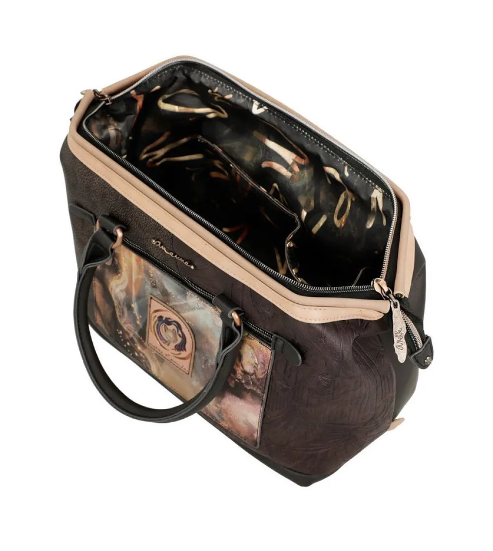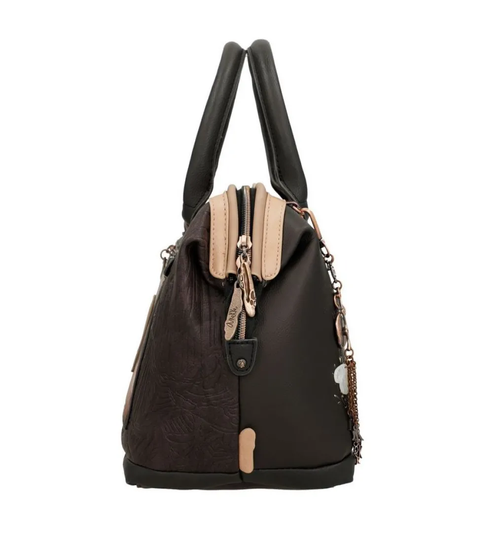 Borsa due manici Anekke Core 39801-151. Borsa con doppia maniglia superiore, ampia tasca principale con chiusura a zip, tasche interne per piccoli oggetti. Tasca posteriore chiusa da zip. Tracolla amovibile e regolabile in lunghezza. Tutti gli accessori, come tiralampo e borchie, sono personalizzate Anekke.