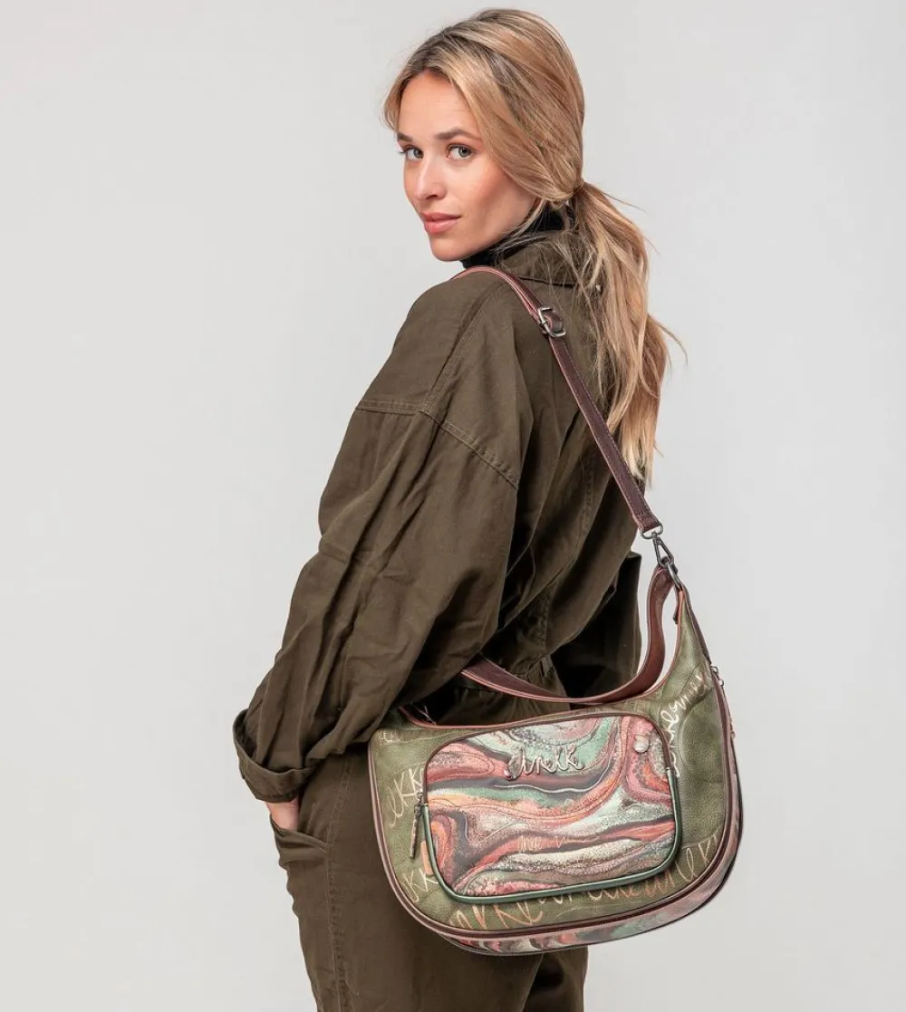 Borsa a tracolla Anekke Outer 39813-110. Borsa a tracolla, ampia tasca principale chiusa da zip, con tasche interne per piccoli oggetti. Tasca posteriore e tasca frontale, chiuse da zip. Tracolla regolabile in lunghezza. Tutti gli accessori, come tiralampo e borchie, sono personalizzate Anekke.