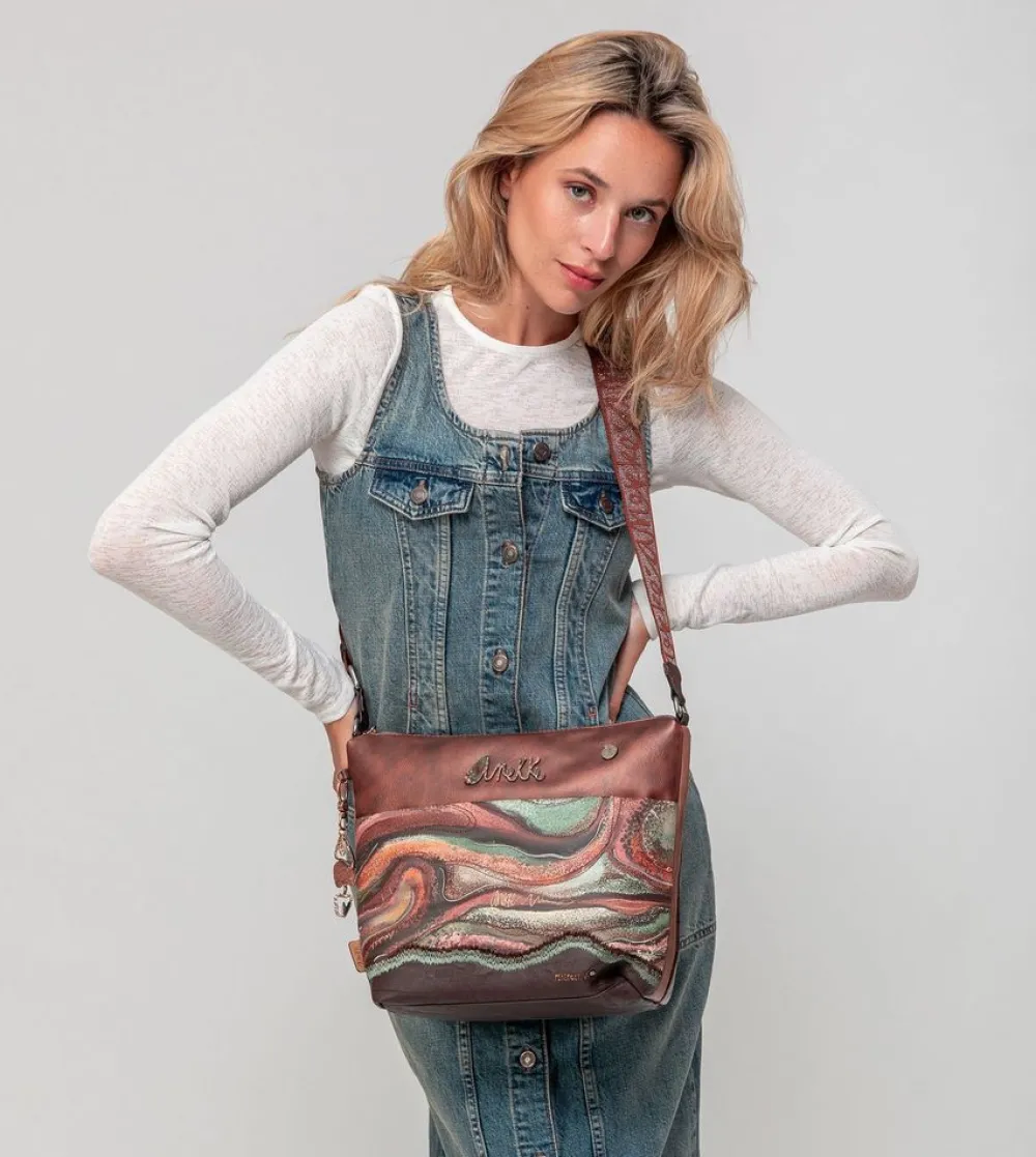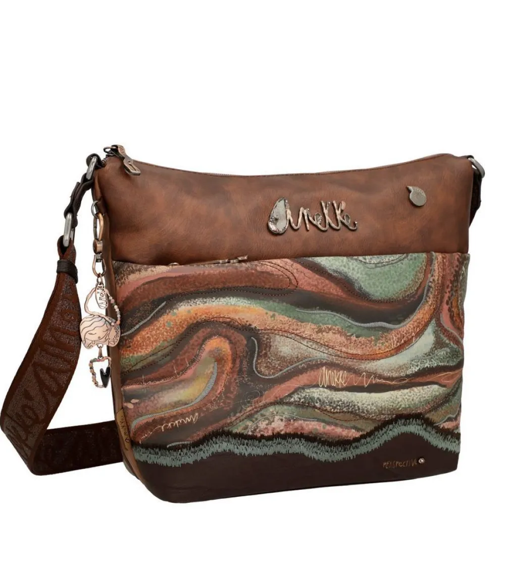 Borsa a tracolla Anekke Outer 39813-249. Borsa a tracolla, ampia tasca principale chiusa da zip, con tasche interne per piccoli oggetti. Tasca posteriore e tasca frontale, chiuse da zip. Tracolla regolabile in lunghezza. Tutti gli accessori, come tiralampo e borchie, sono personalizzate Anekke.