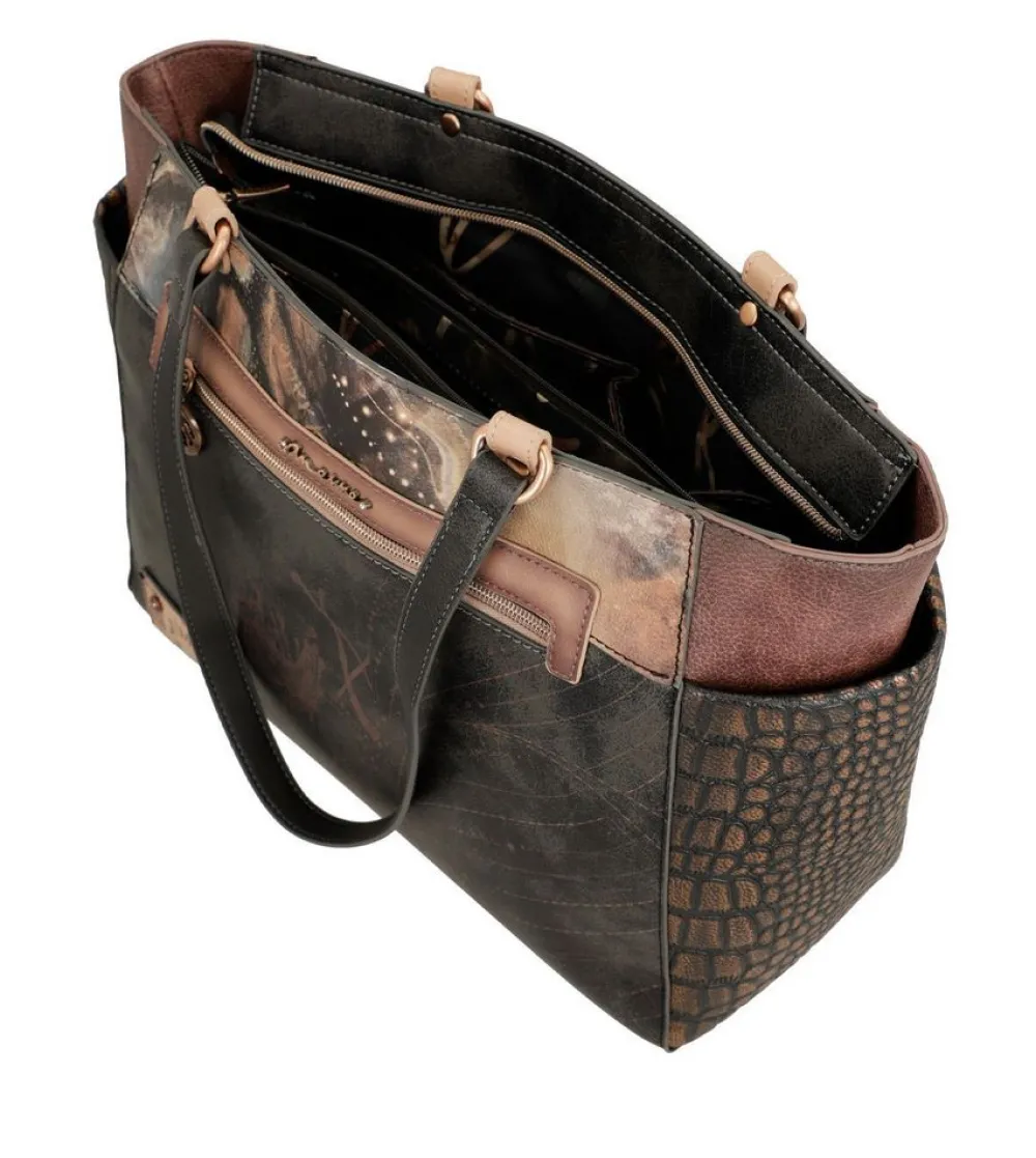 Borsa a tracolla Anekke Dreamverse 39703-002. Borsa a tracolla, ampia tasca principale chiusa da zip, con tasche interne per piccoli oggetti. Tasca posteriore chiusa da zip. Tracolla regolabile in lunghezza. Tutti gli accessori, come tiralampo e borchie, sono personalizzate Anekke.