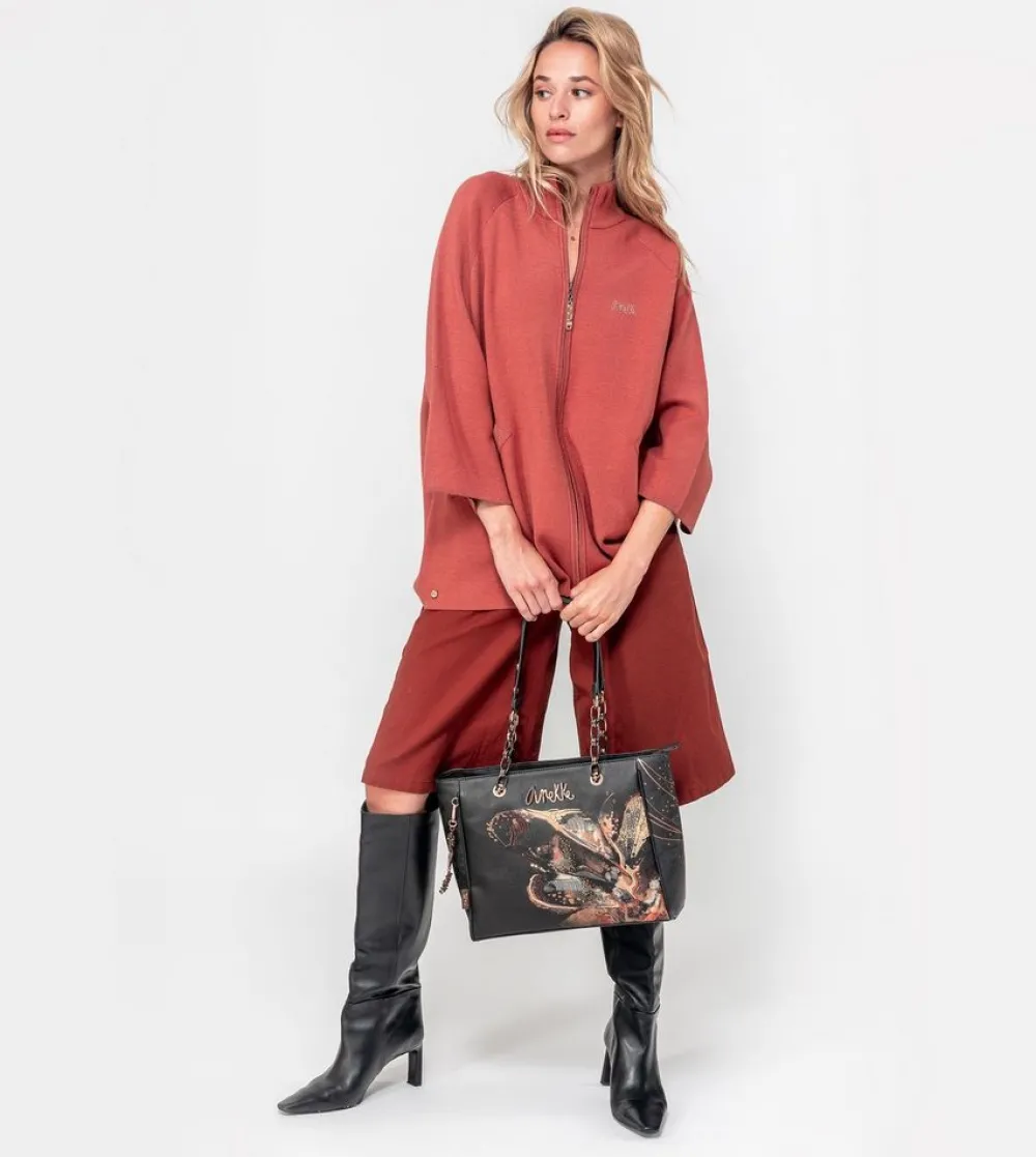 Borsa due manici Anekke Crust 39891-268. Borsa con doppia maniglia superiore, ampia tasca principale chiusa da zip. Tasca posteriore chiusa da zip. Tutti gli accessori, come tiralampo e borchie, sono personalizzate Anekke.