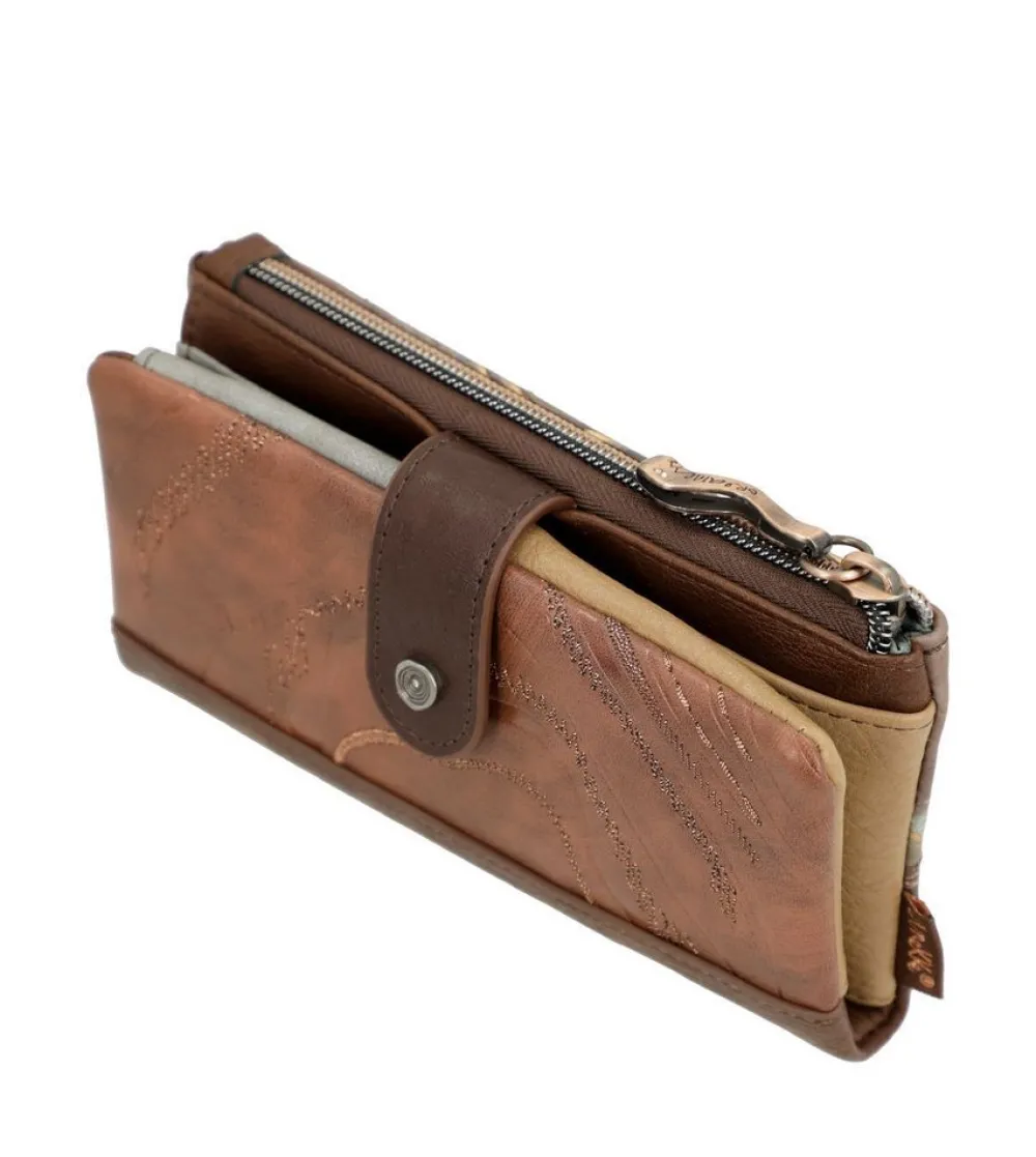 Portafoglio donna Anekke Core 39809-907. Realizzato in robusto PVC, tasca principale chiusa da bottone, con soffietti per banconote e vano portadocumenti. Tasca portamonete posteriore chiusa da zip.