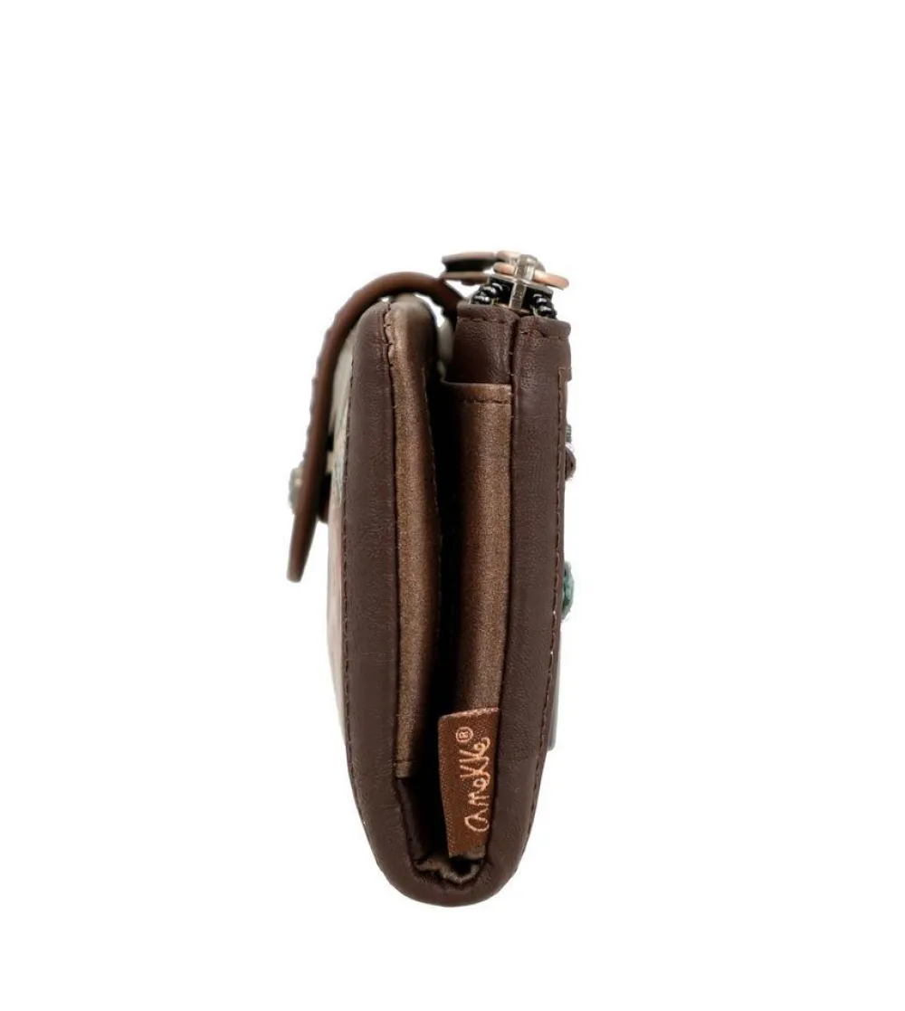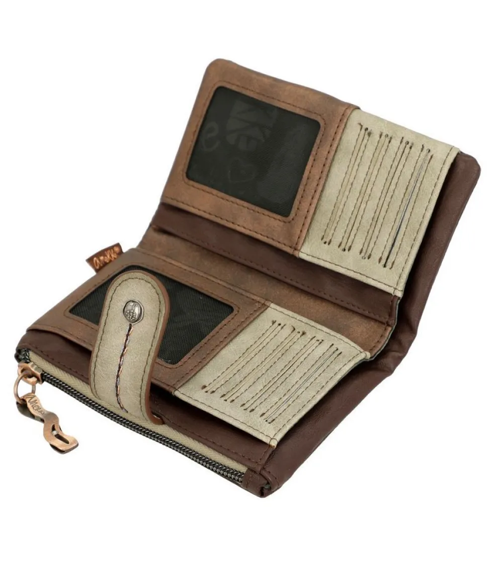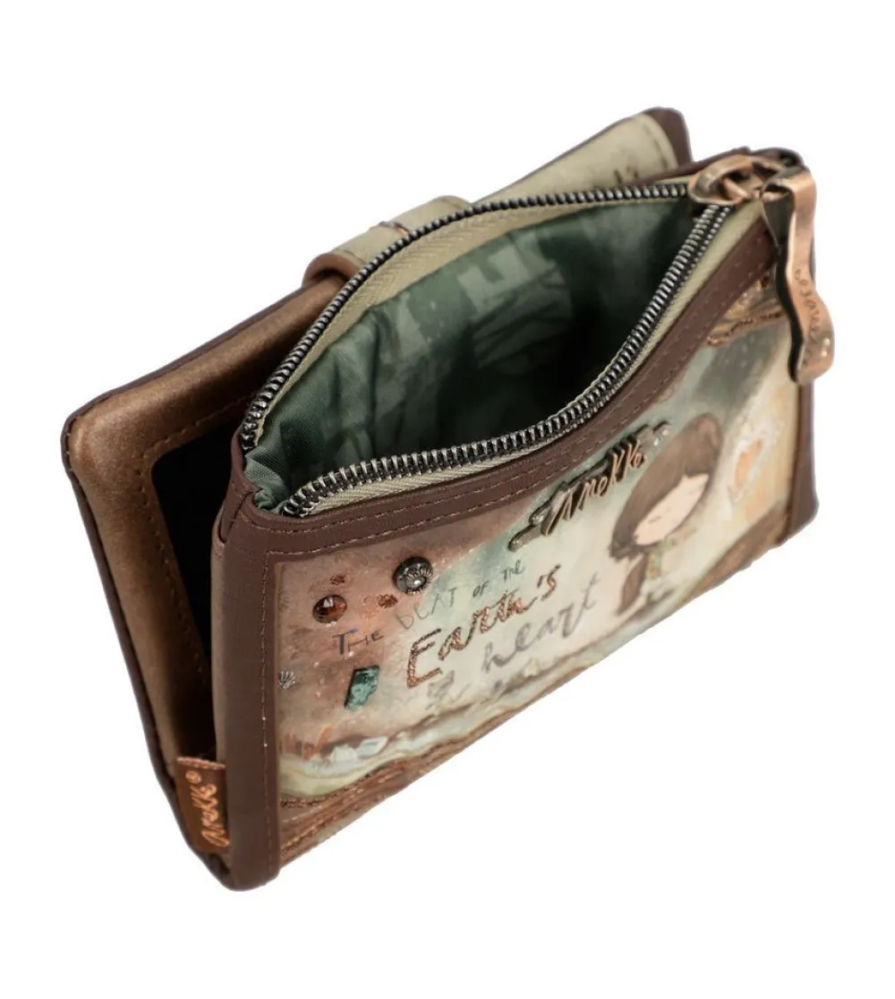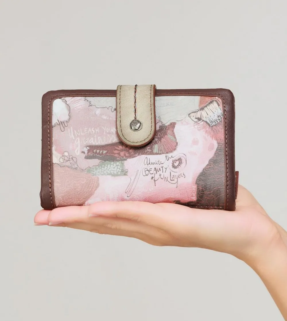 Portafoglio donna Anekke Core 39809-912. Realizzato in robusto PVC, tasca principale chiusa da bottone, con soffietti per banconote e doppio vano portadocumenti. Tasca portamonete posteriore chiusa da zip.