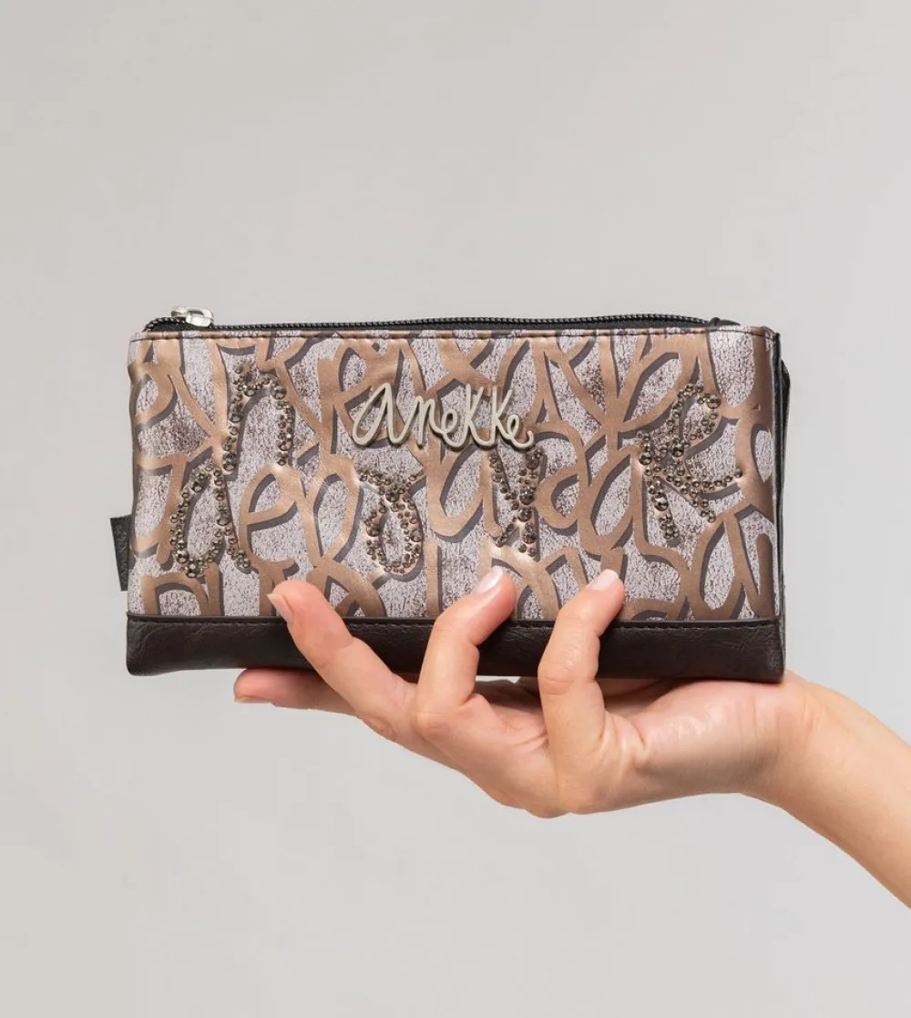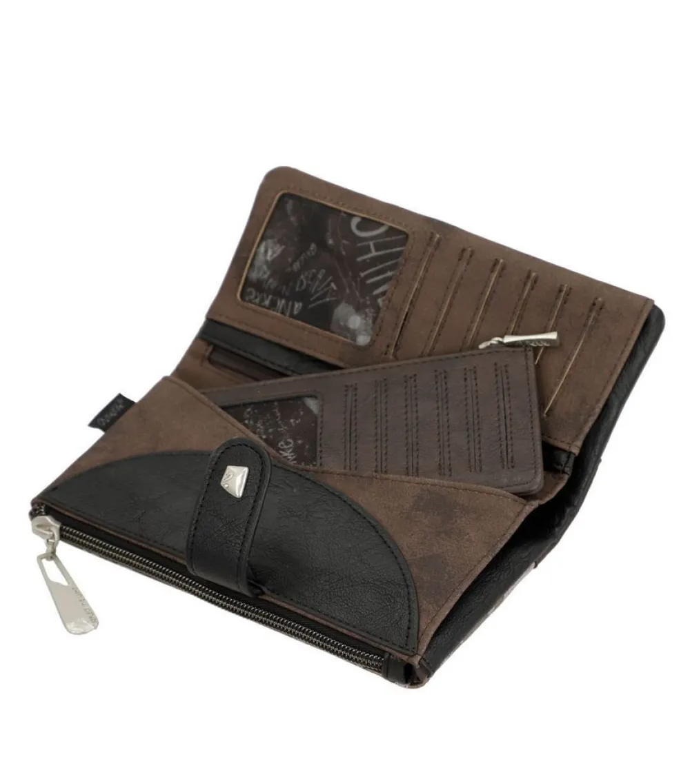 Portafoglio donna Anekke Mantle 39889-906. Realizzato in robusto materiale sintetico, tasca principale chiusa da bottone, con soffietti per banconote e vano portadocumenti. Tasca portamonete posteriore chiusa da zip.