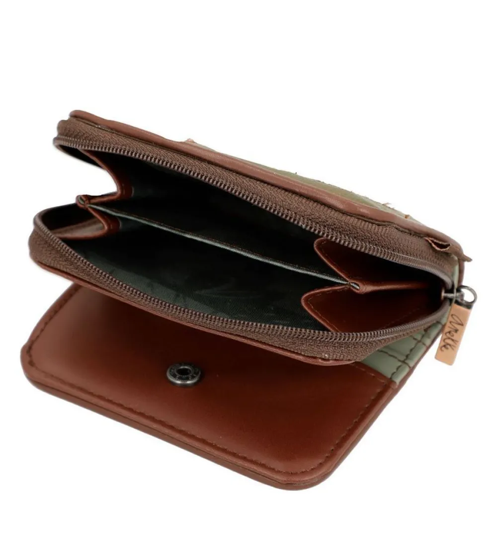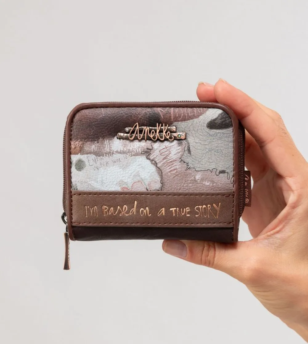 Portafoglio donna piccolo Anekke Outer 39819-903. Realizzato in robusto PVC, tasca principale chiusa da bottone, con soffietti per banconote e vano portadocumenti. Tasca portamonete posteriore chiusa da zip.