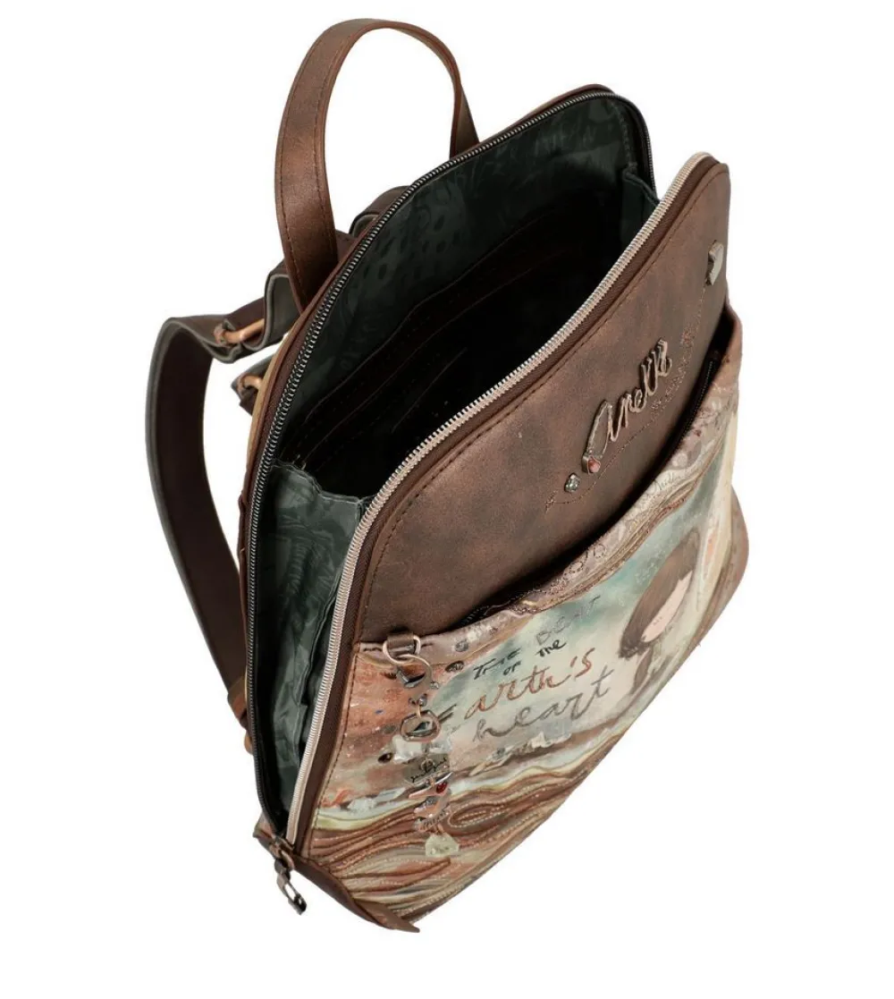 Zaino donna Anekke Core 39805-233. Zaino donna con maniglia superiore, ampia tasca principale chiusa da da zip e tasche interne per piccoli oggetti. Tasca frontale e tasca posteriore, chiuse da zip. Accessorio portachiavi incluso. Tutti gli accessori, come tiralampo e borchie, sono personalizzate Anekke.