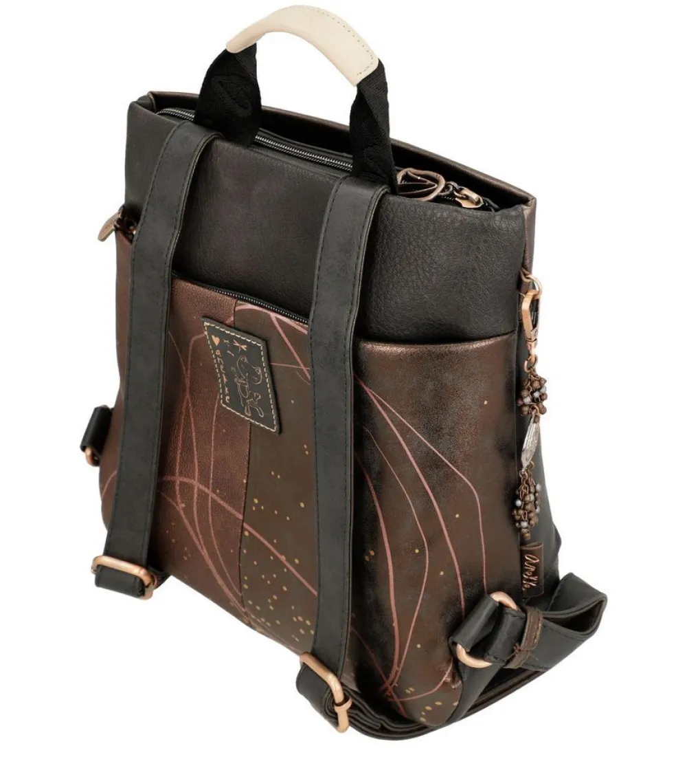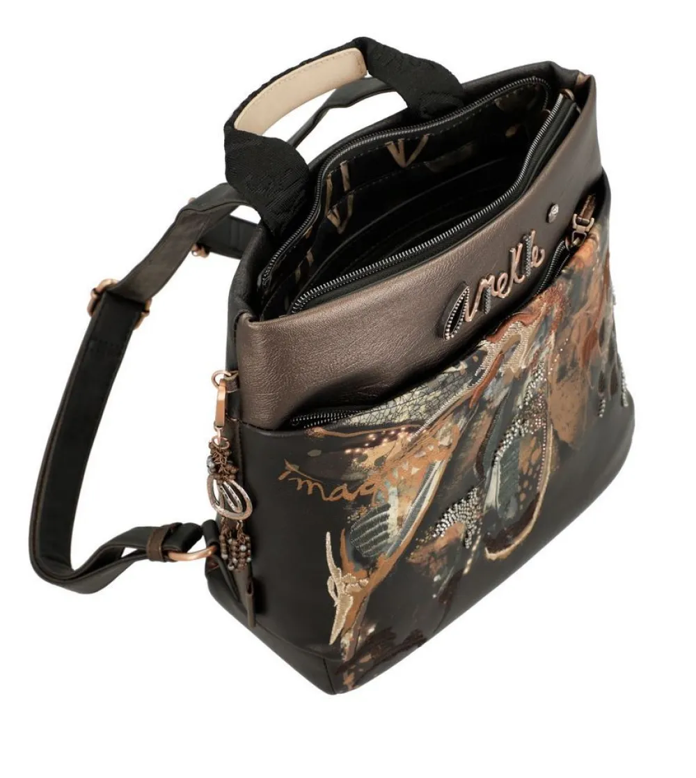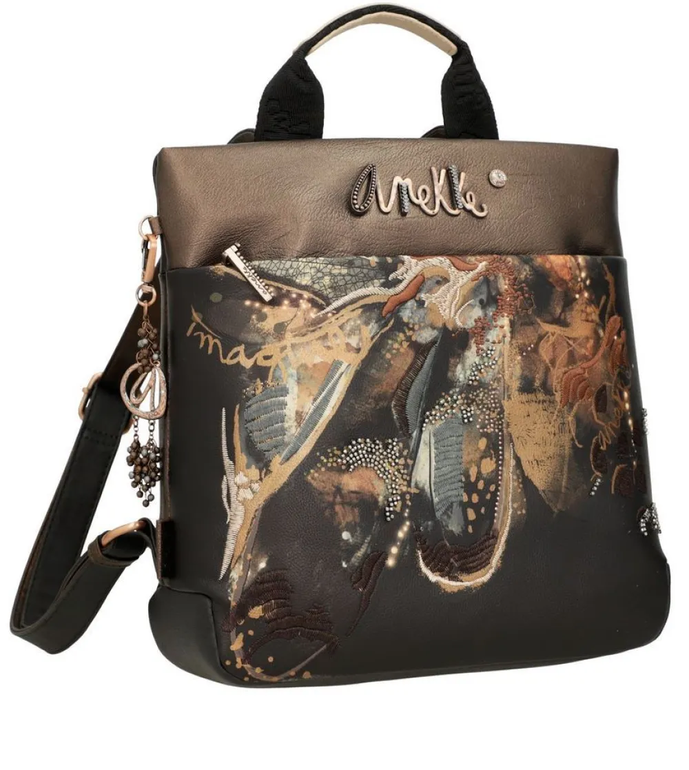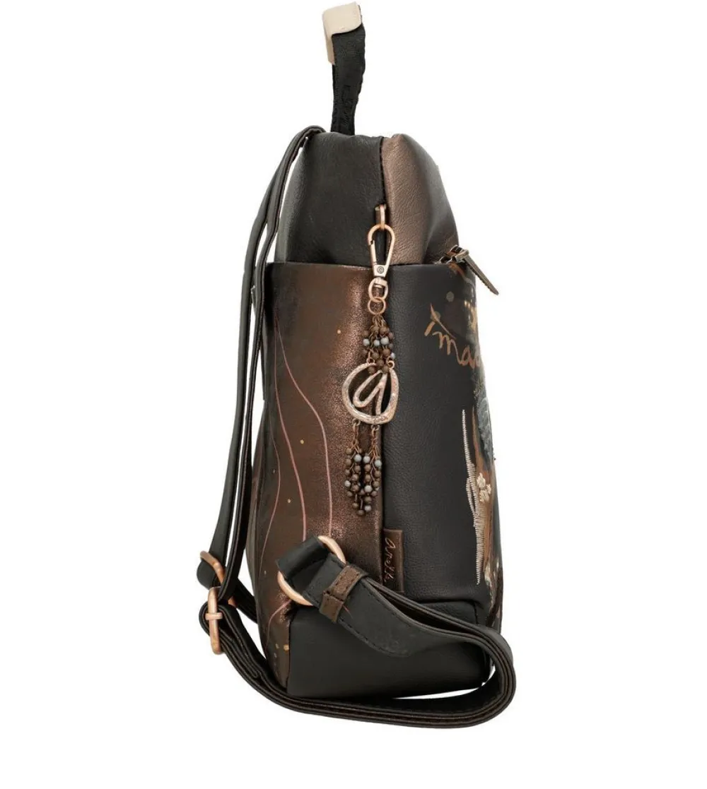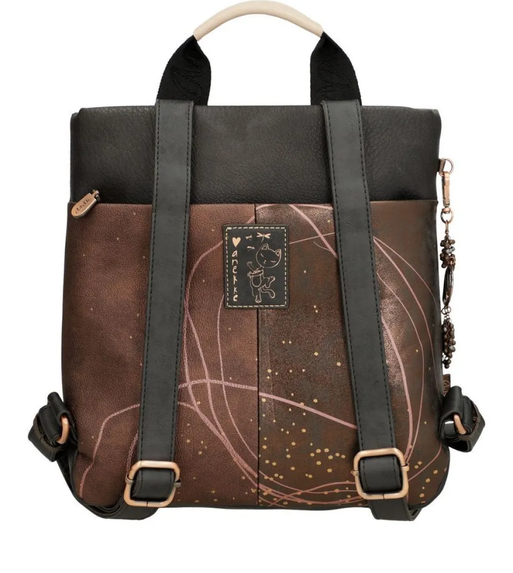 Zaino donna Anekke Imaginary 39775-256. Zaino donna con doppia maniglia superiore, ampia tasca principale chiusa da zip e tasche interne per piccoli oggetti. Tasca posteriore chiusa da zip. Accessorio portachiavi incluso. Tutti gli accessori, come tiralampo e borchie, sono personalizzate Anekke.