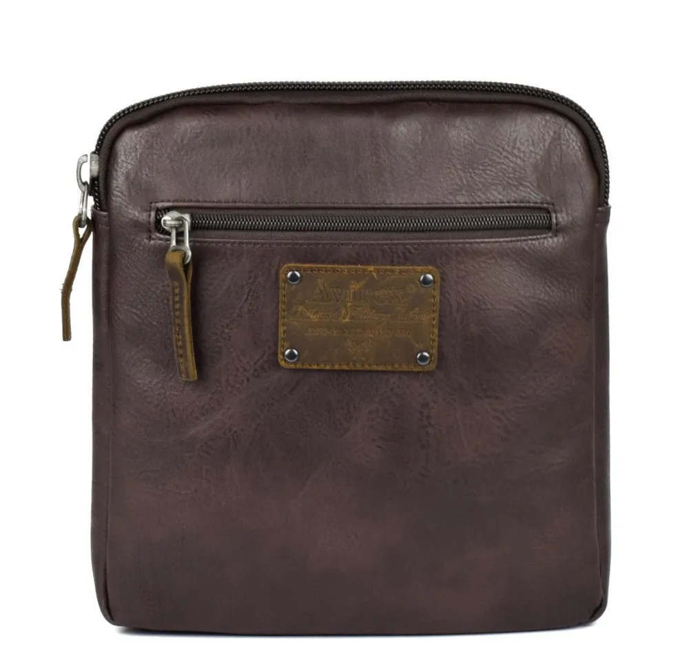 Borsa uomo Avirex Buffalo 07. Borsa a tracolla realizzata in robusto materiale sintetico effetto invecchiato. Ampia tasca principale chiusa da zip, tasca frontale e tasca posteriore chiuse da zip. Tracolla regolabile in lunghezza.