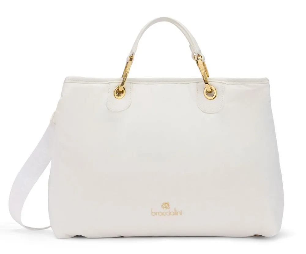 Borsa a mano Braccialini Beth Puffy. Borsa realizzata in materiale sintetico di alta qualità . Ampia tasca principale chiusa da bottone, tasca interna chiusa da zip e tasche per piccoli oggetti. Busta interna che diventa una pratica borsa. Tracolla amovibile.