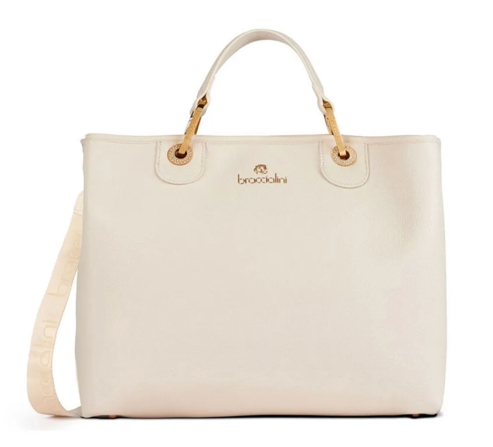 Borsa a mano Braccialini Beth. Borsa realizzata in materiale sintetico di alta qualità . Ampia tasca principale chiusa da bottone, tasca interna chiusa da zip e tasche per piccoli oggetti. Busta interna che diventa una pratica borsa. Tracolla amovibile.
