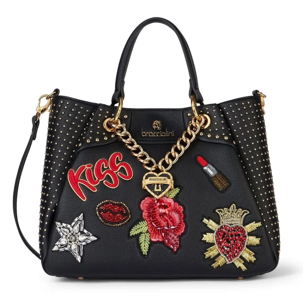 Borsa a mano Braccialini Beth Jewels. Borsa realizzata in materiale sintetico di alta qualità . Ampia tasca principale chiusa da bottone, tasca interna chiusa da zip e tasche per piccoli oggetti. Busta interna che diventa una pratica borsa. Tracolla amovibile.