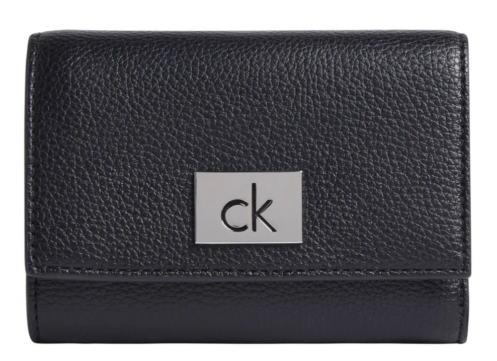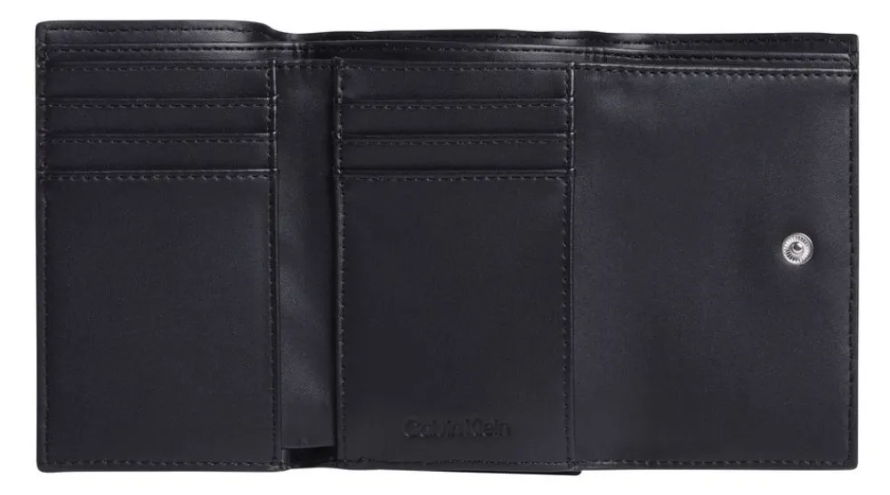 Portafoglio donna piccolo Calvin Klein. Tasca principale con vano portadocumenti e vano banconote. Tasca portamonete posteriore chiusa da zip. Tecnologia con blocco RFID. Logo frontale.