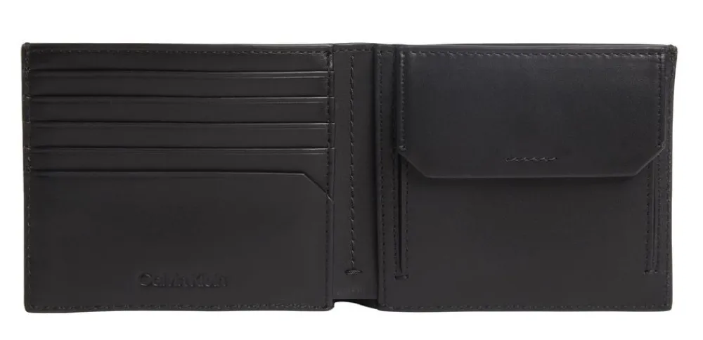 Portafoglio uomo in pelle Calvin Klein. Realizzato in pelle di alta qualità , con vano portadocumenti, tasca portamonete chiusa da bottone e vano portabanconote. Schermatura RFID.