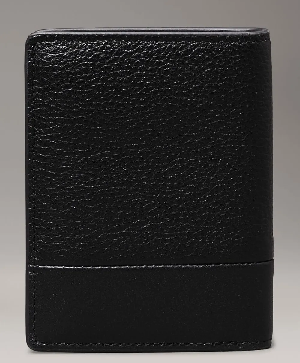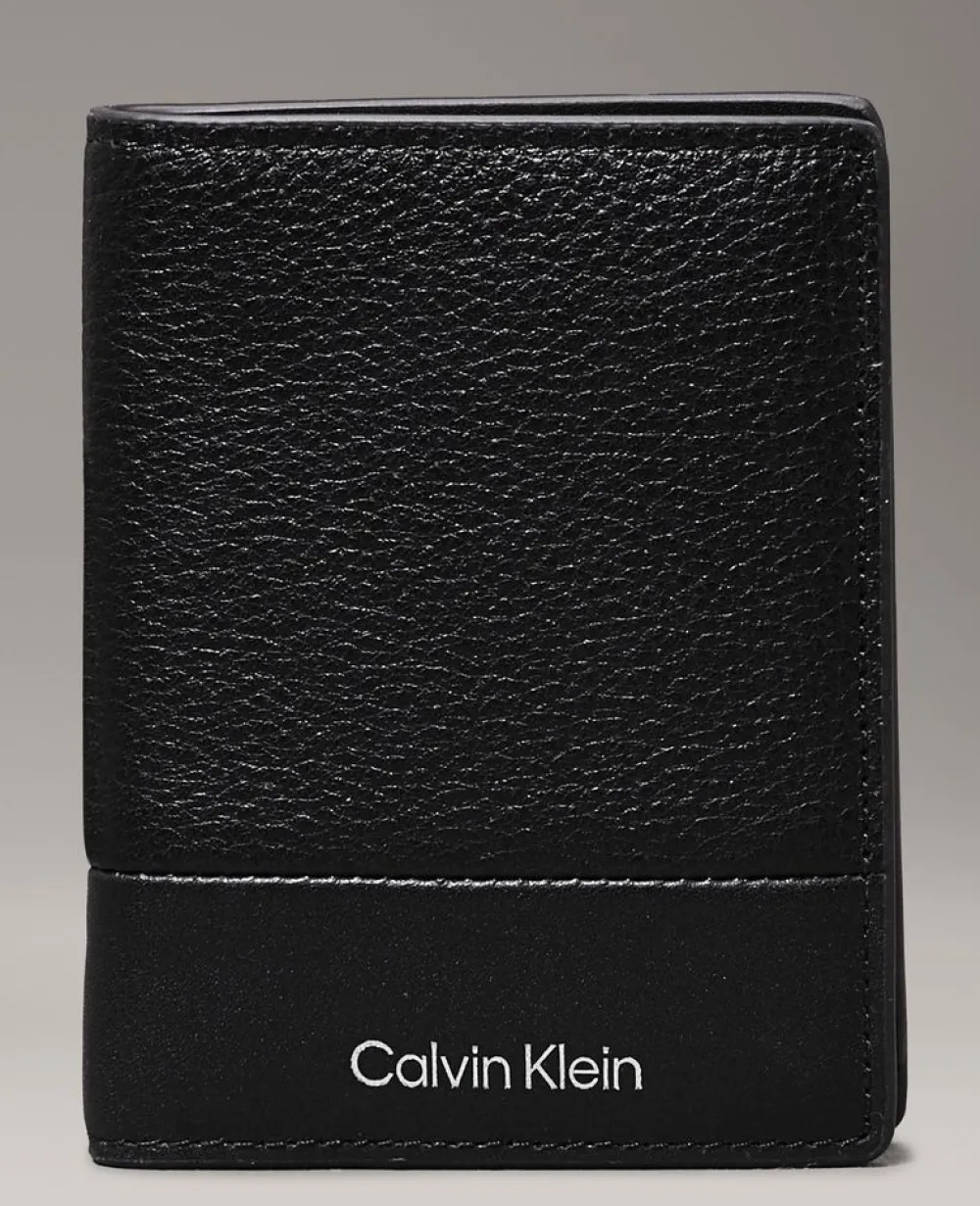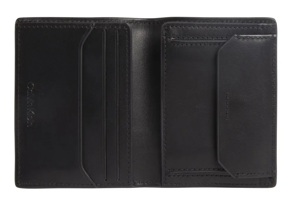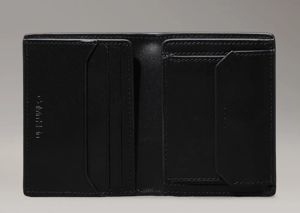 Portafoglio uomo piccolo in pelle Calvin Klein. Realizzato in pelle di alta qualità , con vano portadocumenti, tasca portamonete chiusa da bottone e vano portabanconote. Schermatura RFID.