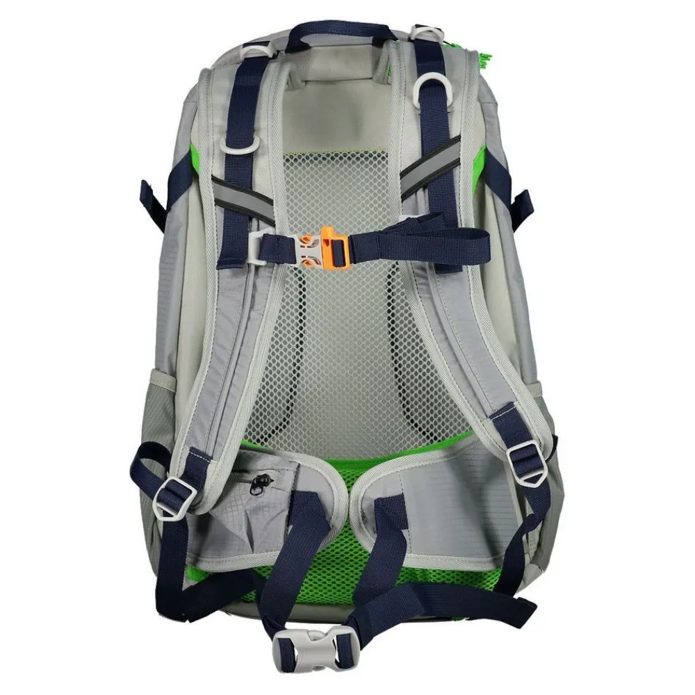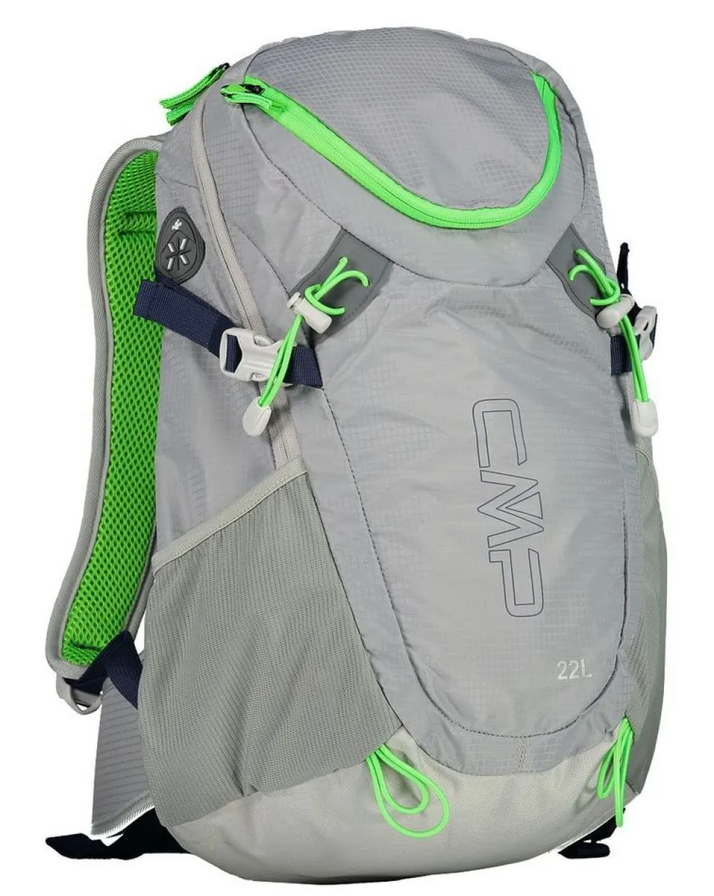 Zaino trekking CMP Katana 22. Zaino leggero e compatto, realizzato in robusto nylon. Tasca principale chiusa da zip, tasche laterali elastiche. Schienale confortevole e traspirante. Spallacci ergonomici. Cintura sternale regolabile e cintura ventrale. Rain cover integrato.