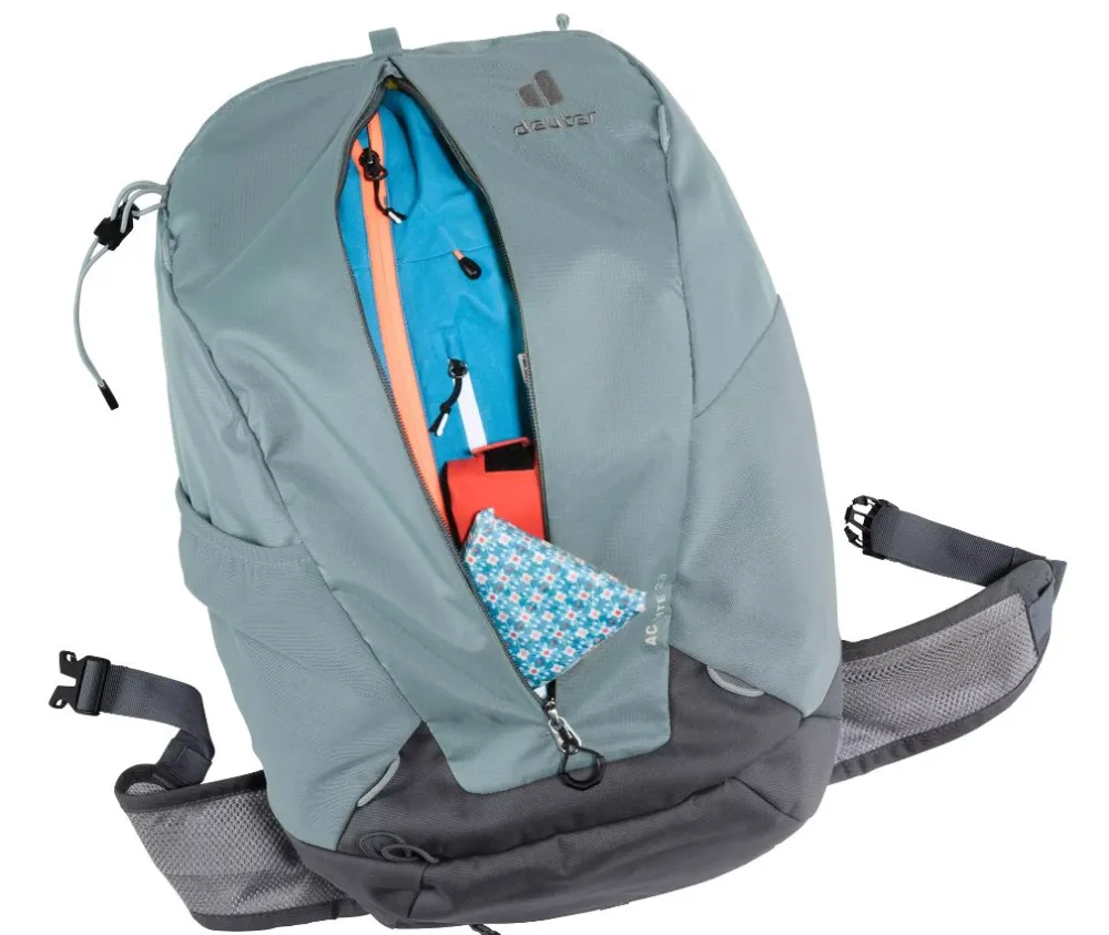 Zaino trekking Deuter AC Lite 30. Zaino ultra-leggero e compatto, realizzato in robusto 210 D PA. Tasca principale chiusa da patta, tasche laterali elastiche. Schienale super confortevole e traspirante Aircomfort. Spallacci ergonomici. Copertura antipioggia amovibile. Compatibile con sistema di idratazione (non incluso). Cintura sternale regolabile.