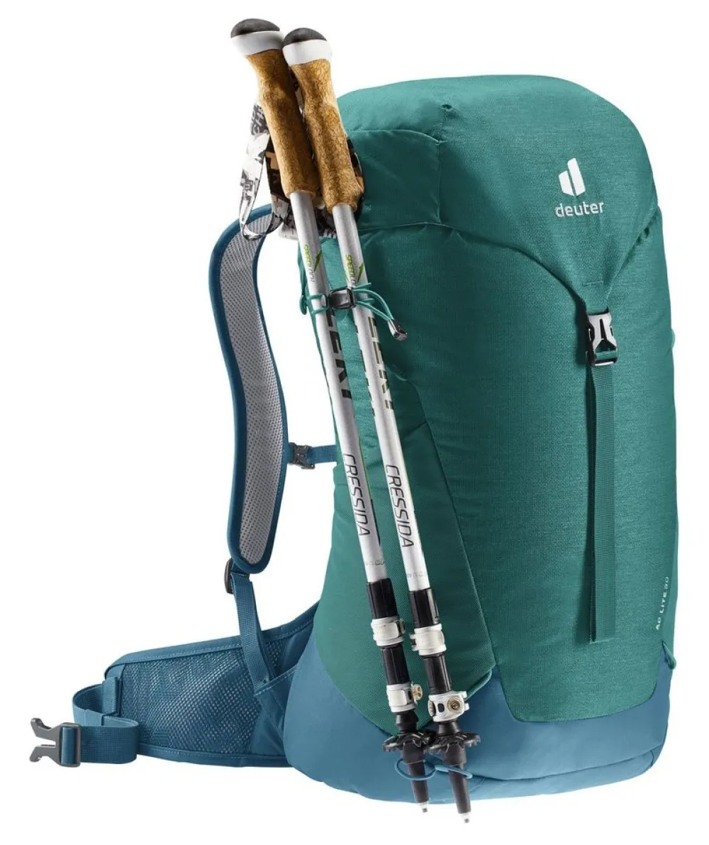 Zaino trekking Deuter Futura 26. Zaino ultra-leggero e compatto, realizzato in robusto 210 D PA riciclato. Tasca principale chiusa da patta, tasche laterali elastiche. Copertura pioggia amovibile. Schienale super confortevole e traspirante Aircomfort. Portabastone da escursione. Spallacci mobili Active Comfort Fit. Compatibile con sistema di idratazione (non incluso). Cintura sternale regolabile.