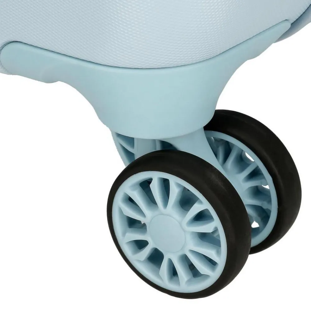 Trolley cabina Disney Happy Stitch. Trolley cabina realizzato in robusto ABS, quattro grandi e silenziose ruote piroettanti. Carrello di traino regolabile in altezza con push botton. Interno completamente foderato, con nastri per bloccare l’abbigliamento e divisorio. Garanzia 2 anni.