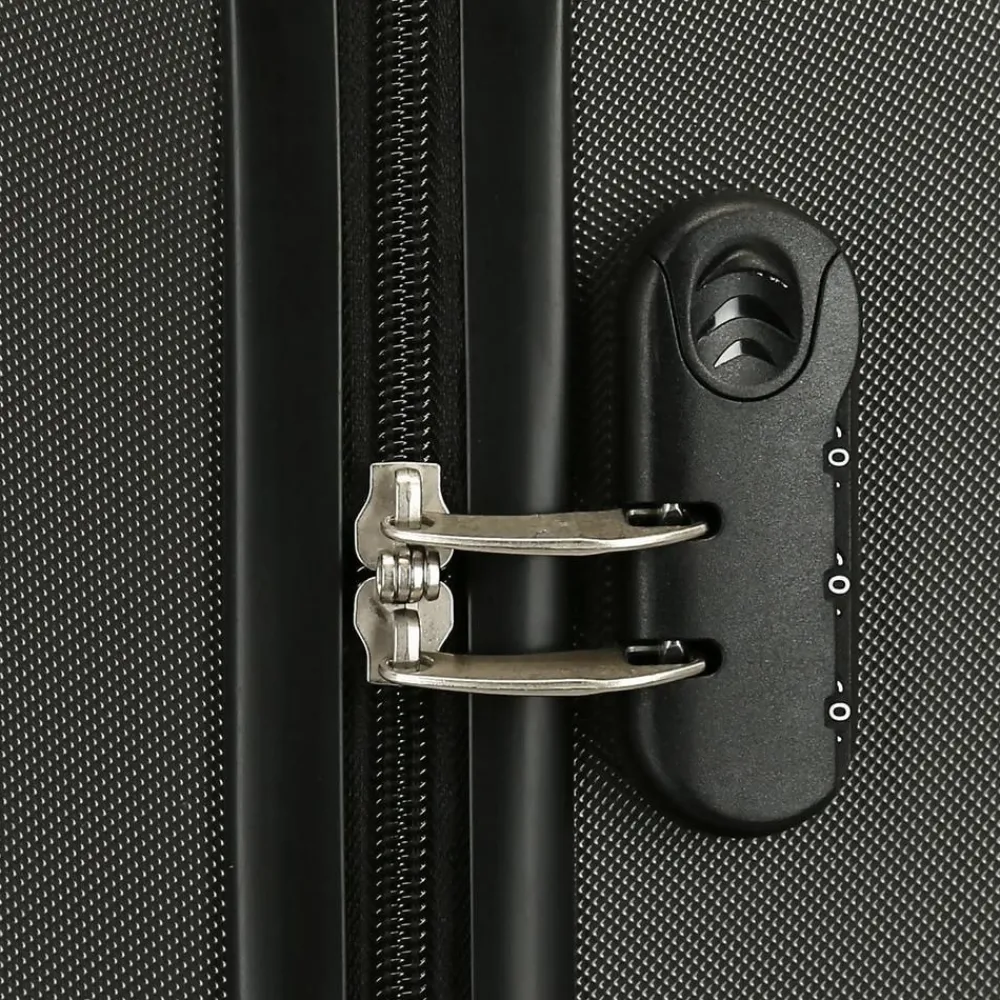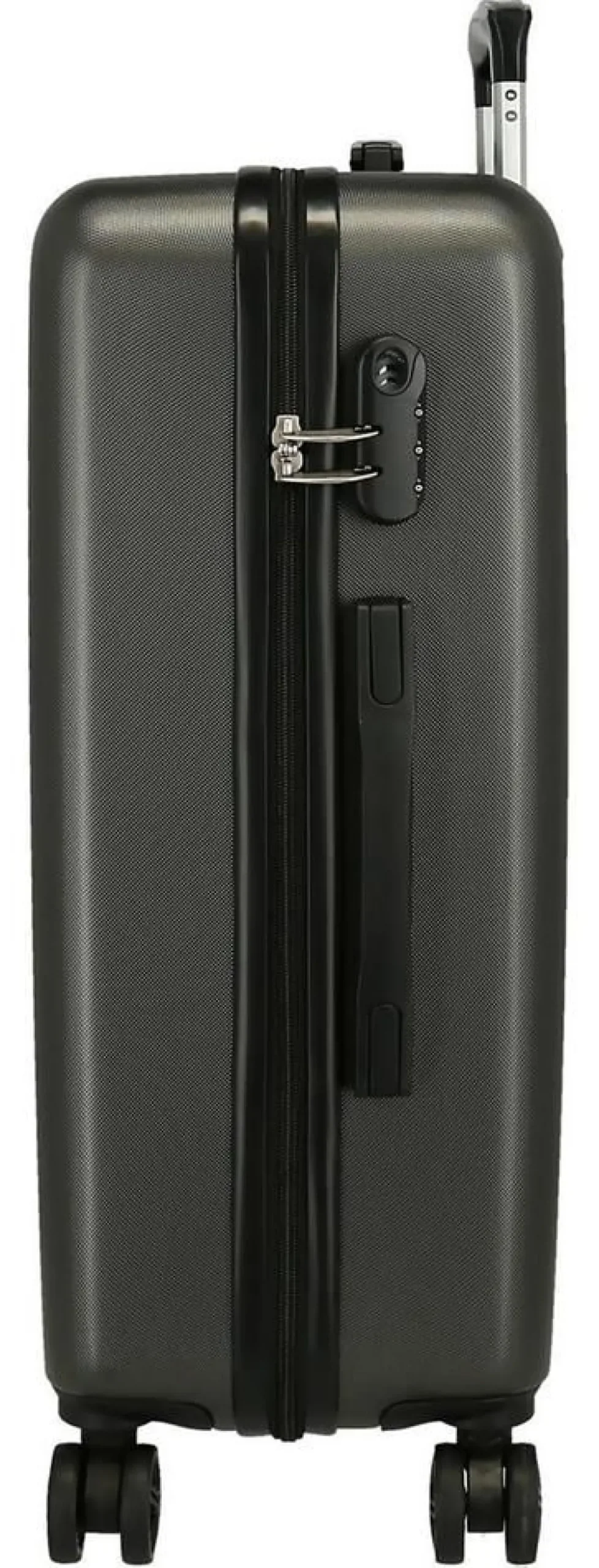 Trolley medio Disney Mickey Outline. Trolley realizzato in robusto ABS, quattro grandi e silenziose ruote piroettanti, zip di chiusura con sistema di sicurezza a tripla combinazione. Carrello di traino regolabile in altezza con push botton. Interno completamente foderato, con nastri per bloccare l’abbigliamento e divisorio. Garanzia 2 anni.