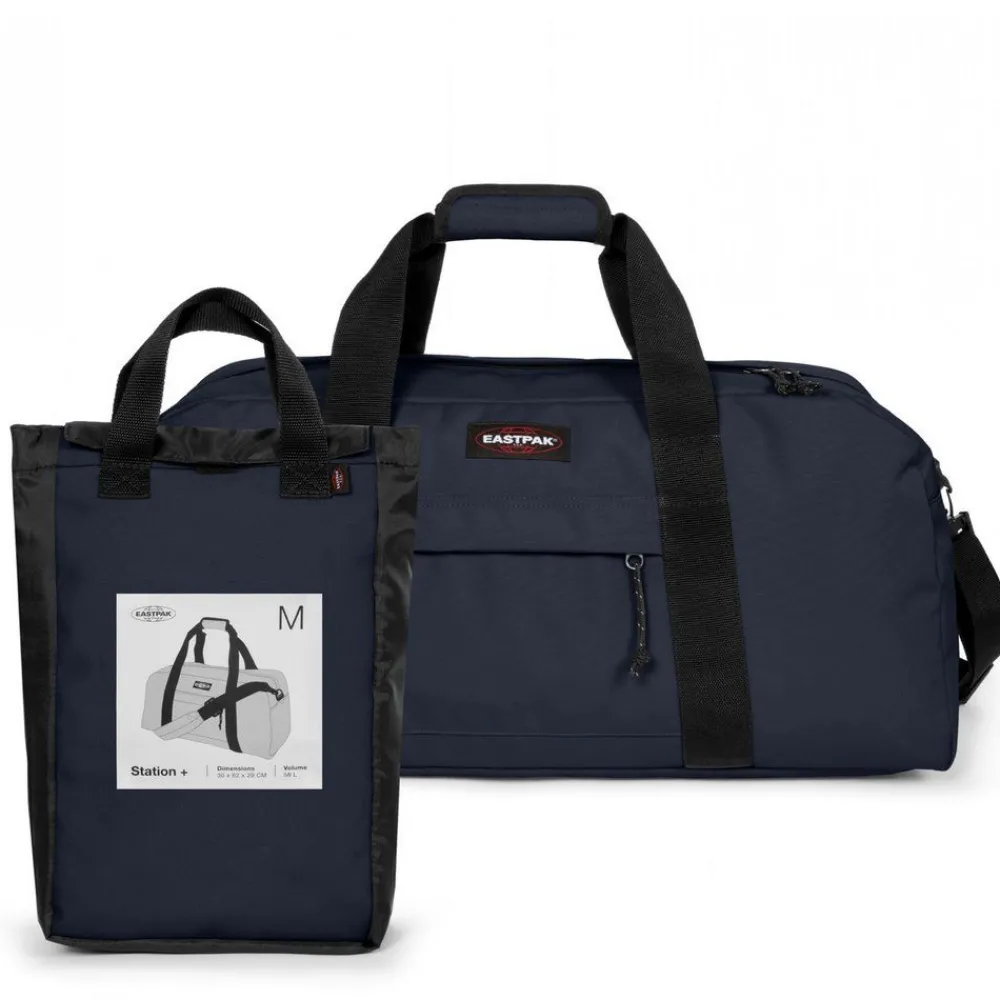 Borsone Eastpak Station +, Authentic collection. Realizzato in robusto poliestere, con ampia tasca principale chiusa da lampo, tasca frontale a scomparsa, tracolla regolabile in lunghezza e removibile. Garanzia 30 anni. Prodotto 100% vegano.