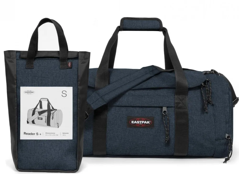Borsone tracolla Eastpak Reader S +. Realizzato in robusto poliestere, scomparto principale con ampia apertura a U, tracolla imbottita e regolabile in lunghezza, tasche laterali chiuse da zip, tasca frontale, tasca interna. Fondo rinforzato, manici superiori con blocco a strap. garanzia 30 anni. Prodotto 100% vegano.