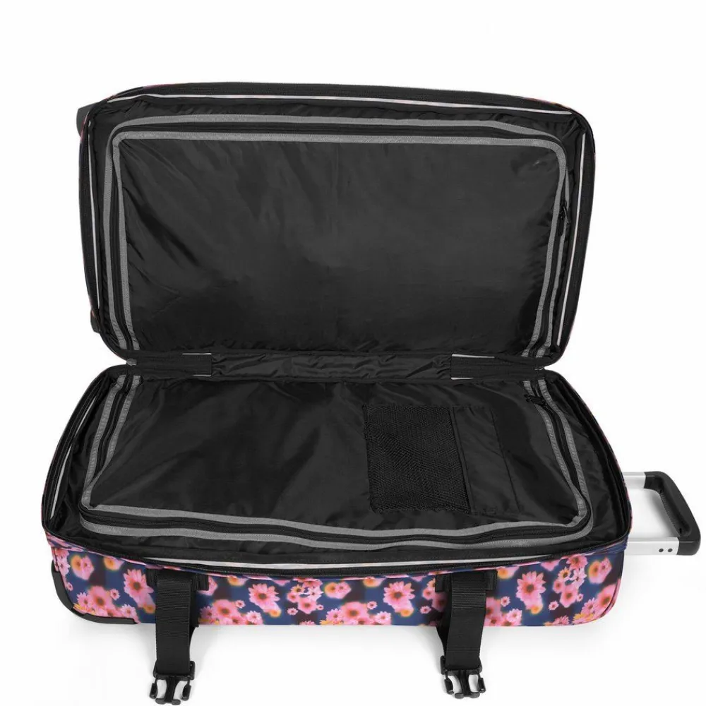 Trolley Eastpak Transit’R L. Realizzato in robusto poliestere con asta di traino telescopica con tubi in alluminio e push button, ampia tasca principale chiusa da zip con due comparti principali interni completamente divisi. Doppia maniglia anteriore e maniglia di servizio superiore. Sistema di chiusura a tripla combinazione TSA integrato. Slitte di rinforzo posteriori. Nastri di compressione laterali. Garanzia 30 anni.