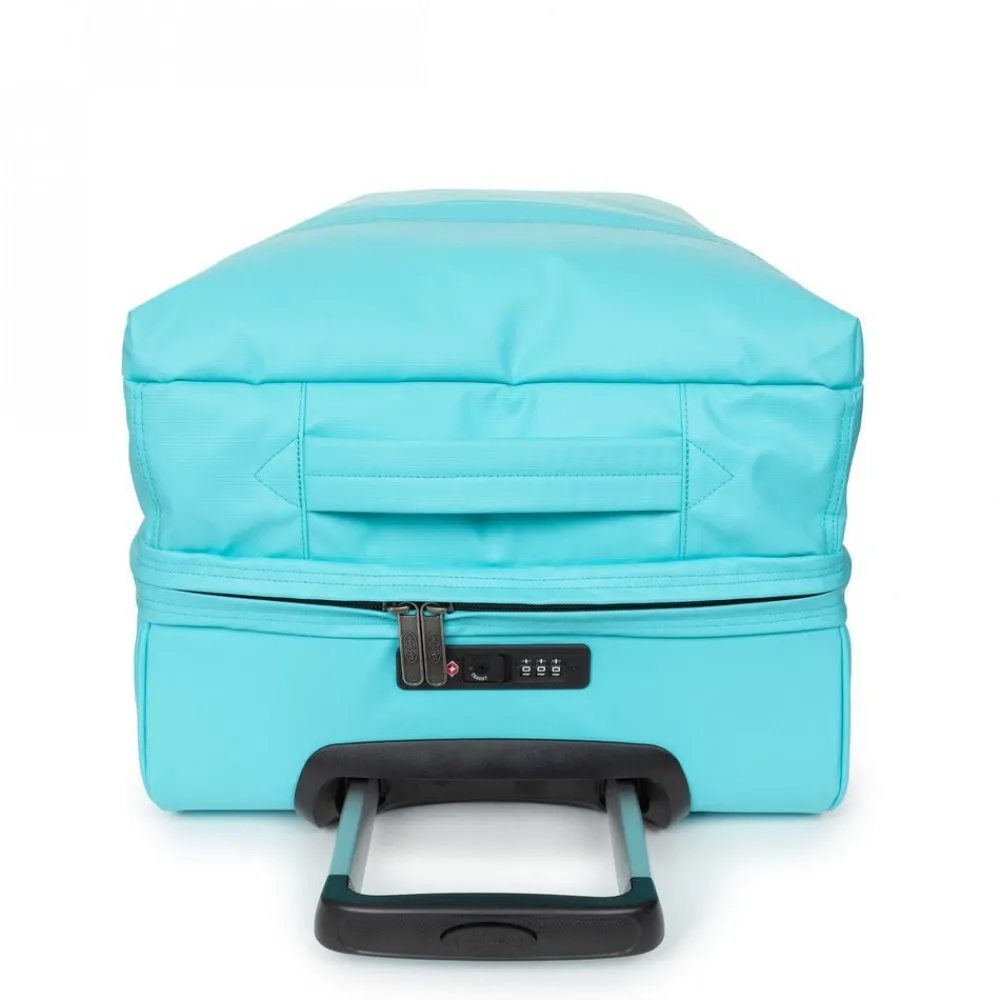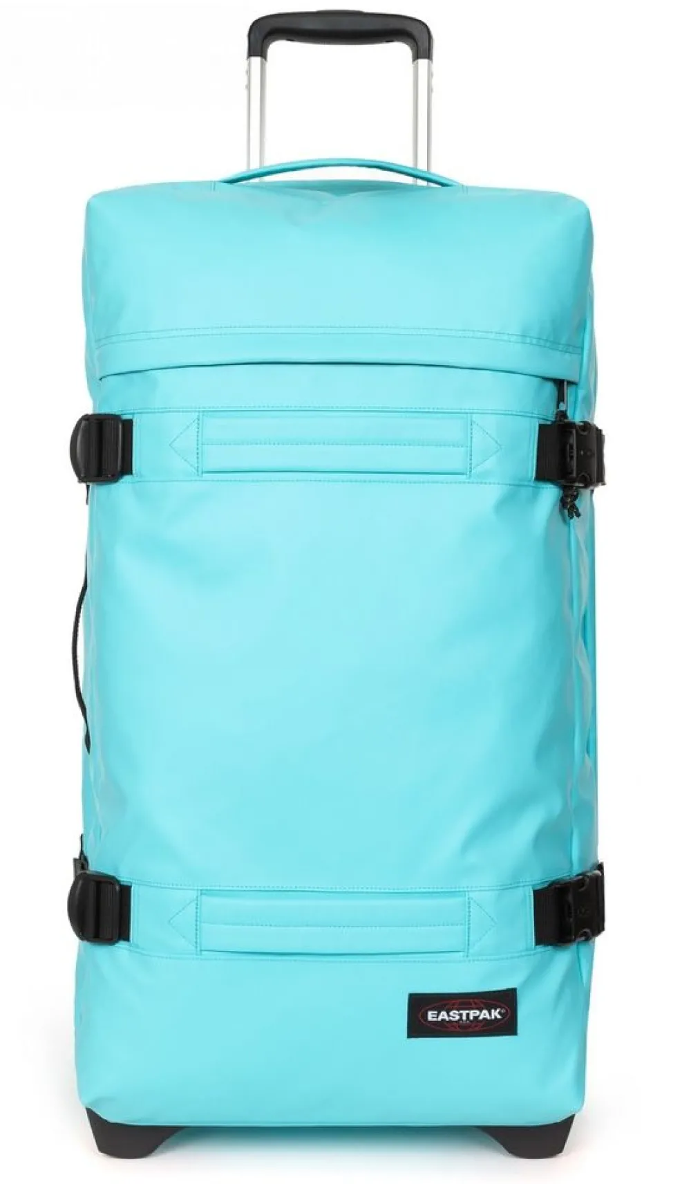 Trolley Eastpak Transit’R L. Realizzato in robusto poliestere con asta di traino telescopica con tubi in alluminio e push button, ampia tasca principale chiusa da zip con due comparti principali interni completamente divisi. Doppia maniglia anteriore e maniglia di servizio superiore. Sistema di chiusura a tripla combinazione TSA integrato. Slitte di rinforzo posteriori. Nastri di compressione laterali. Garanzia 30 anni.