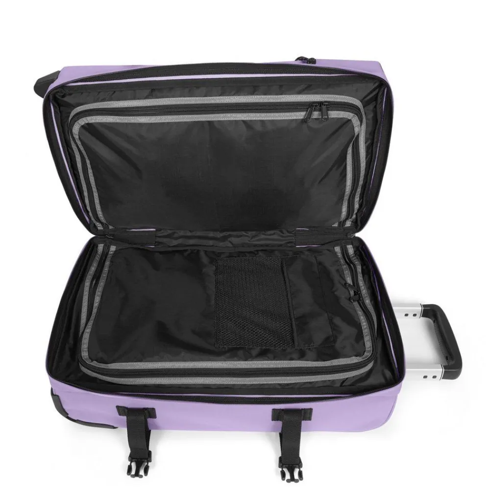 Trolley Eastpak Transit’R S. Realizzato in robusto poliestere con asta di traino telescopica con tubi in alluminio e push button, ampia tasca principale chiusa da zip con due comparti principali interni completamente divisi. Doppia maniglia anteriore e maniglia di servizio superiore. Sistema di chiusura a tripla combinazione TSA integrato. Slitte di rinforzo posteriori. Nastri di compressione laterali. Garanzia 30 anni.