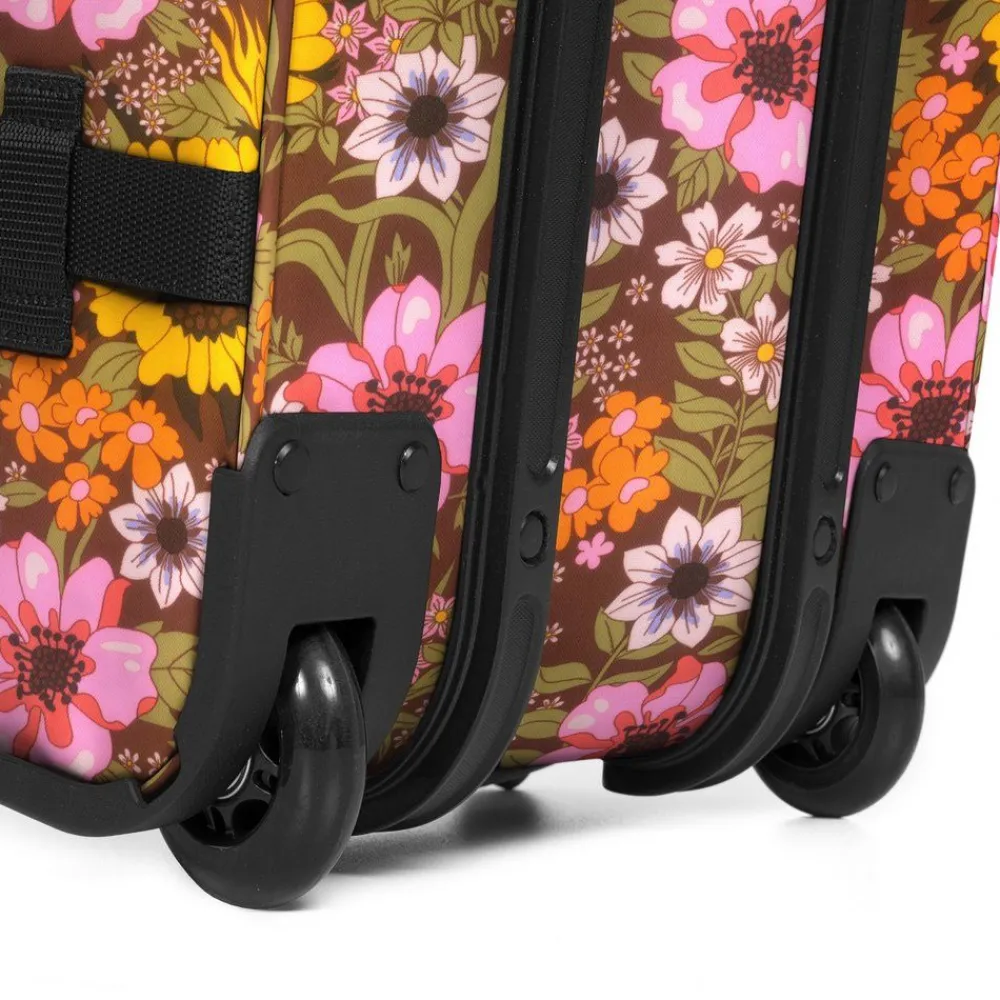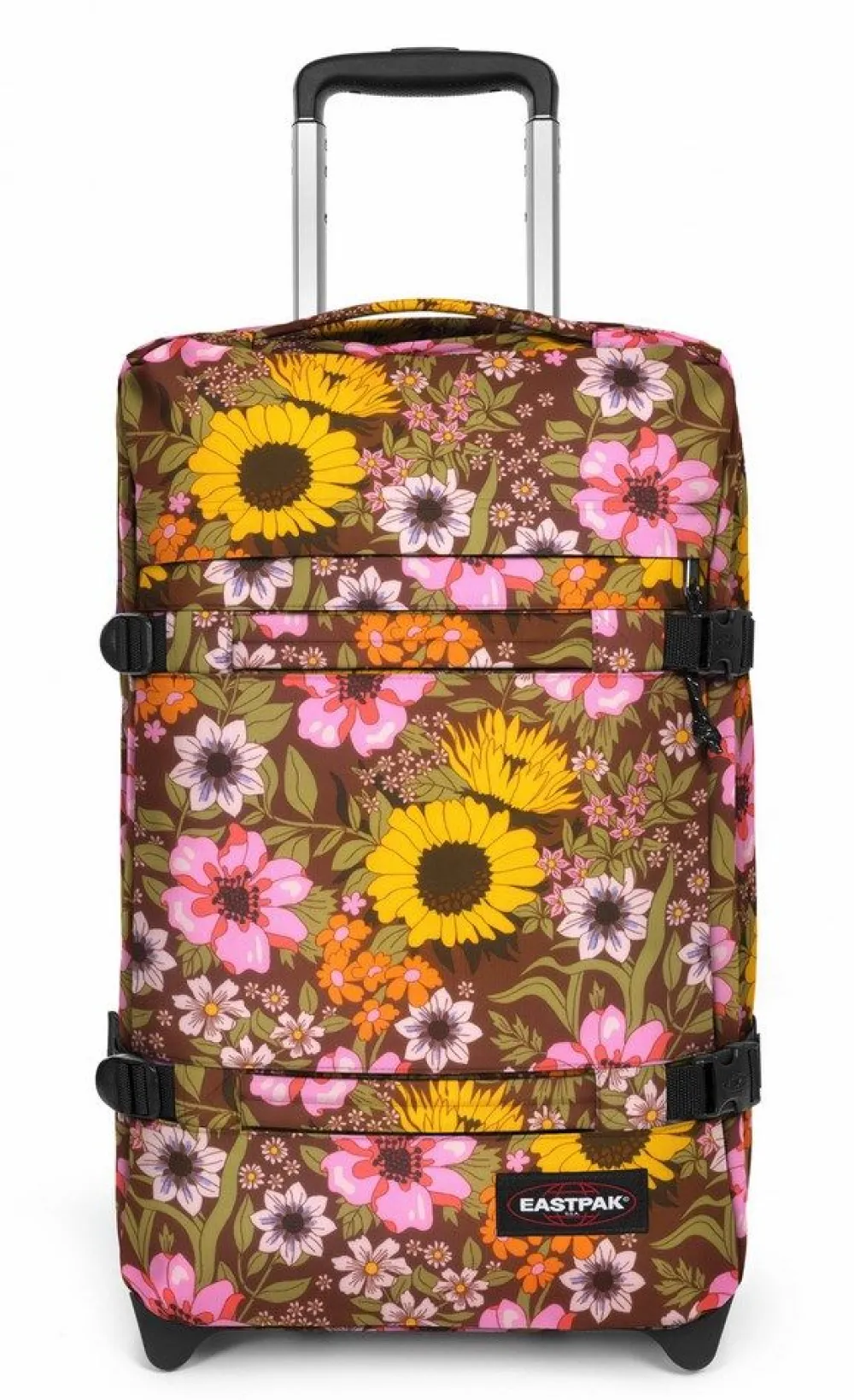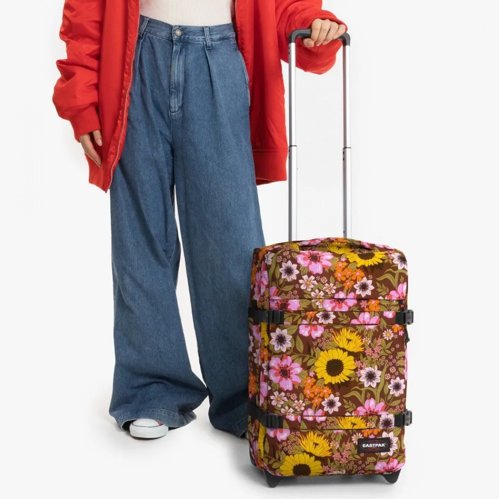 Trolley Eastpak Transit’R S. Realizzato in robusto poliestere con asta di traino telescopica con tubi in alluminio e push button, ampia tasca principale chiusa da zip con due comparti principali interni completamente divisi. Doppia maniglia anteriore e maniglia di servizio superiore. Sistema di chiusura a tripla combinazione TSA integrato. Slitte di rinforzo posteriori. Nastri di compressione laterali. Garanzia 30 anni.