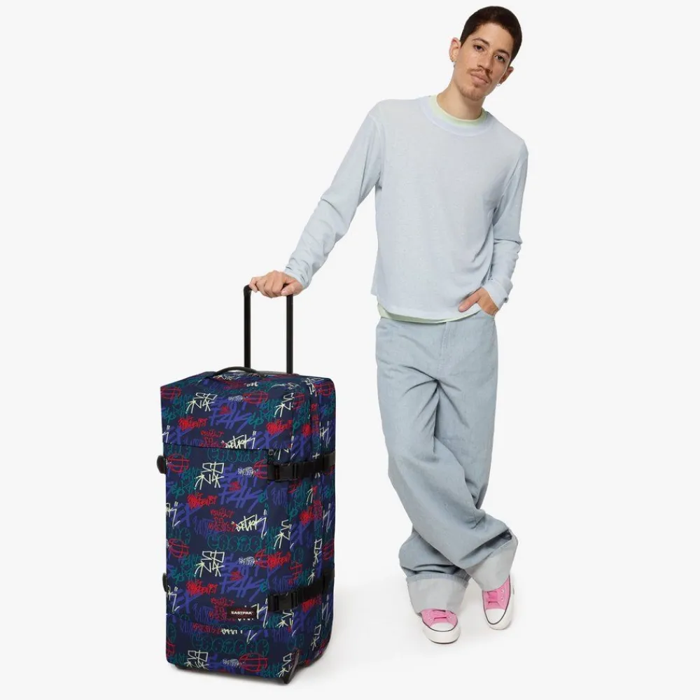 Trolley Eastpak Tranverz L EK63L. Trolley realizzato in robusto poliestere, con due grandi ruote integrate, carrello di traino rinforzato. Interno con divisorio e tasche per piccoli oggetti. tasca fronmtale chiusa da zip. Sistema di chiusura a tripla combinazione con TSA per gli Stati Uniti. Cinghie laterali di compressione regolabili ad aggancio rapido. Garanzia 30 anni.