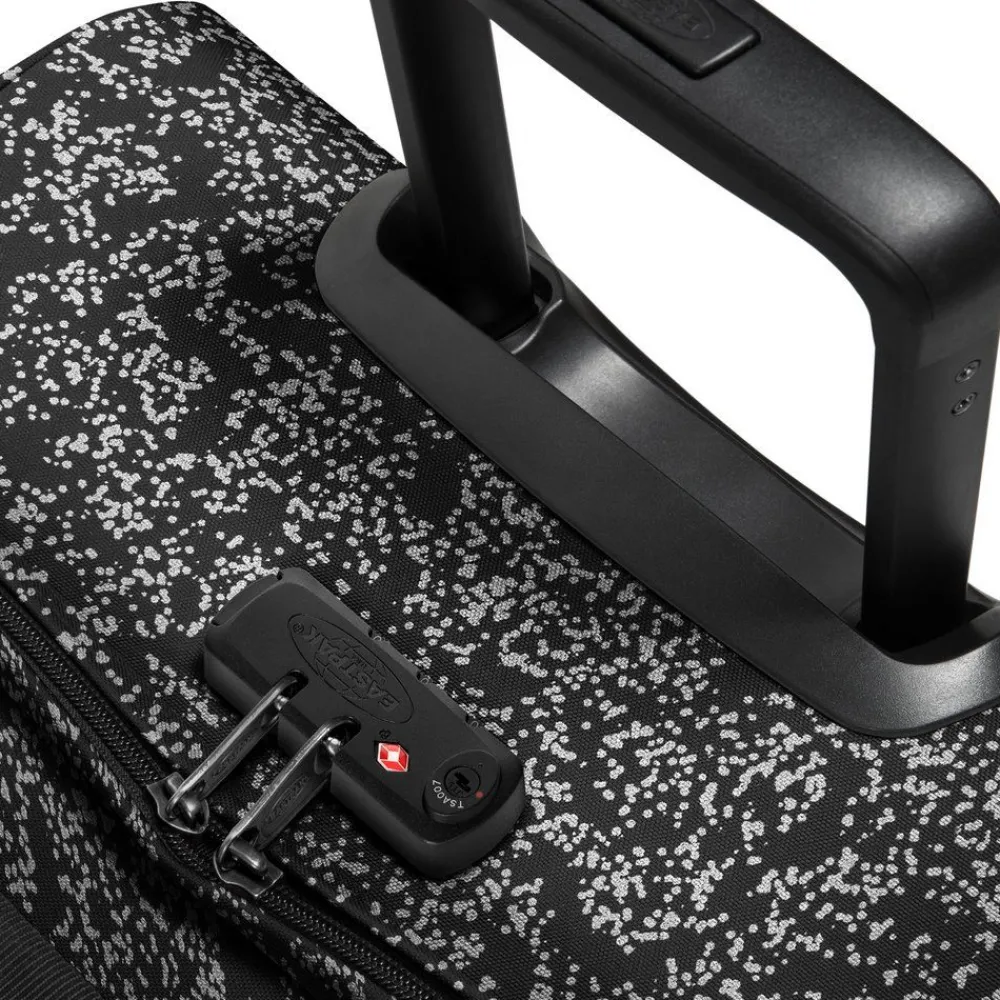 Trolley Eastpak Tranverz S Authentic Collection, bagaglio a mano aereo. Realizzato in robusto Poliestere con asta di traino telescopica a scomparsa con push botton, doppio comparto separato, tasca frontale con zip, ruote integrate e piedi inferiori rigidi, chiusura a tripla combinazione con TSA per gli Stati Uniti. Le cinghie di compressione laterali regolabili consentono di bloccare il contenuto anche a mezzo carico. Garanzia 30 anni.