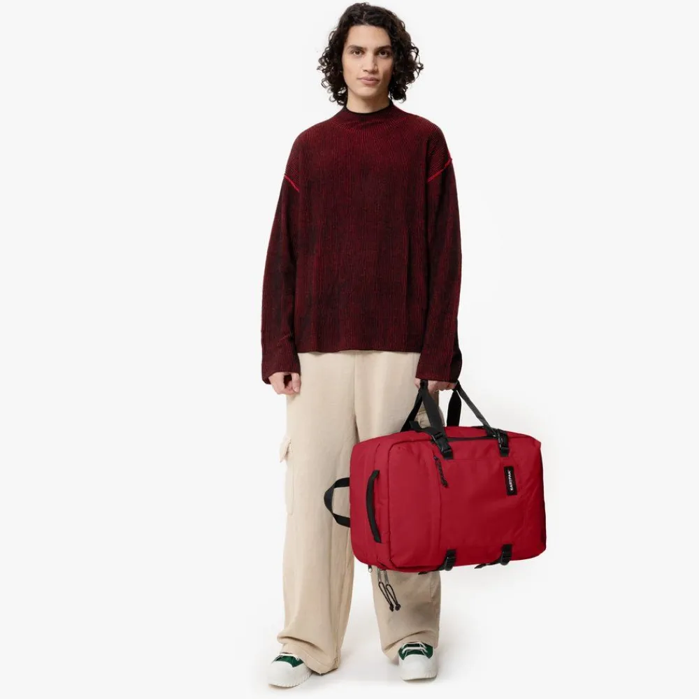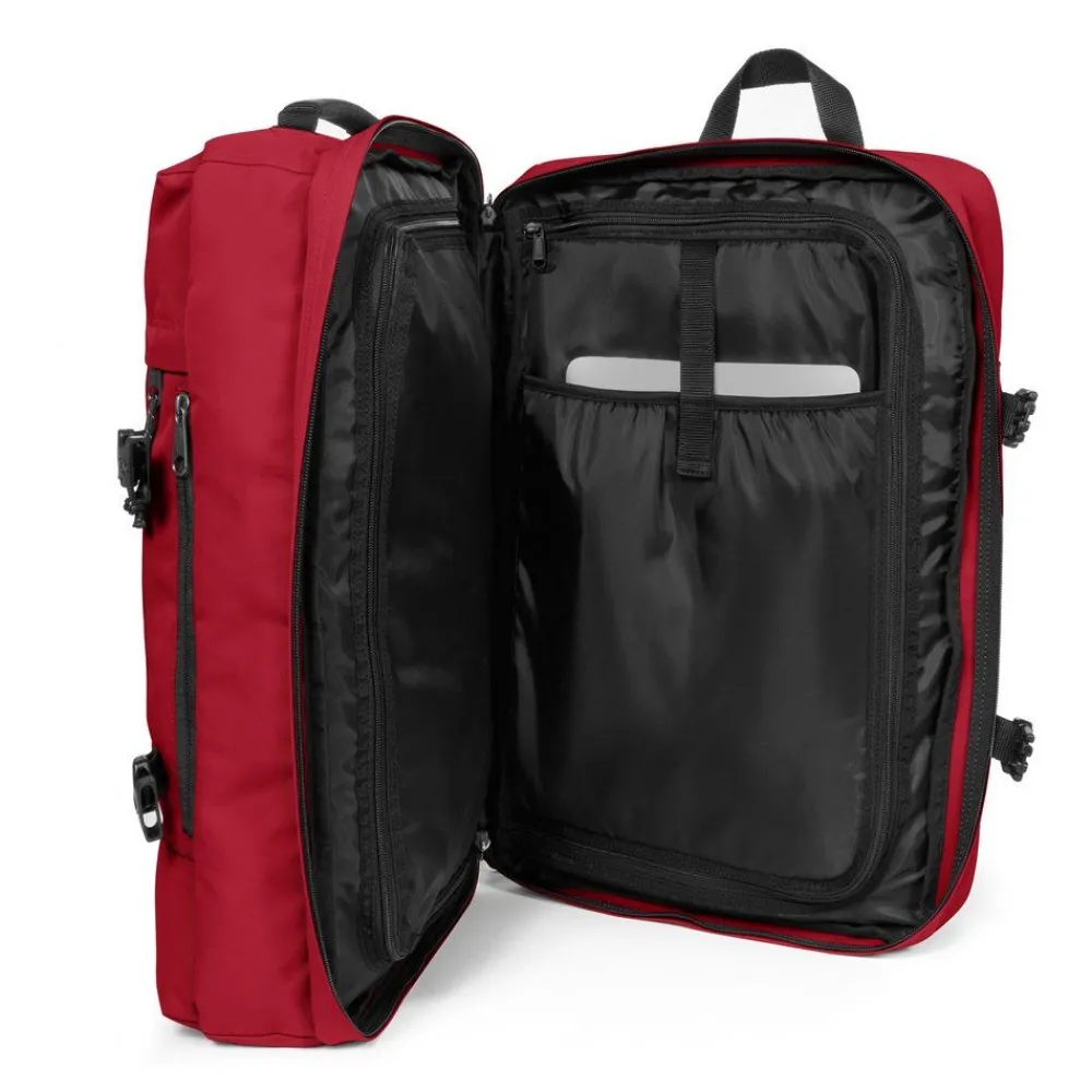 Zaino da viaggio Eastpak Travelpack. Borsa viaggio, zaino e porta pc/tablet, tutto in uno! Realizzato in robusto nylon, con spallacci gommati a scomparsa completa e vano porta pc/tablet 17″. Leggerissimo (solo 1kg) e con ben 42 litri di carico. Le misure lo rendono il bagaglio a mano aereo ideale per tutte le compagnie aeree. Garanzia 30 anni
