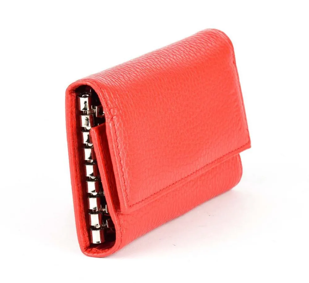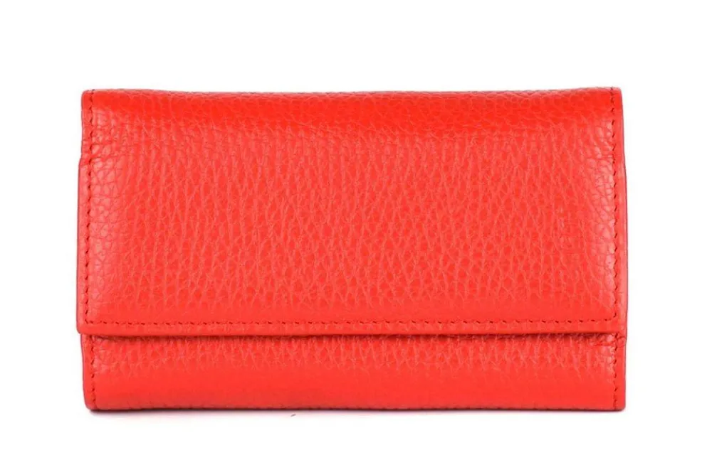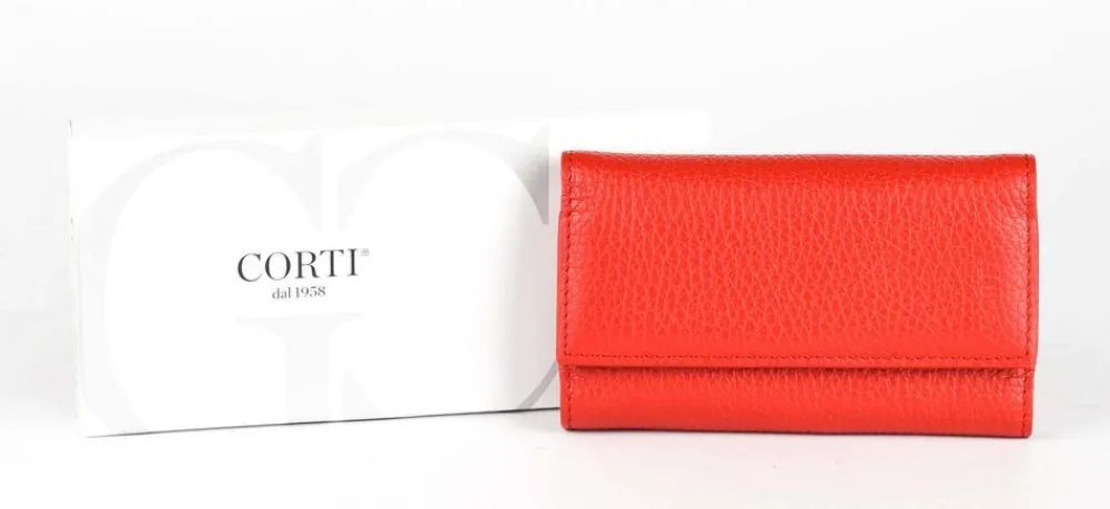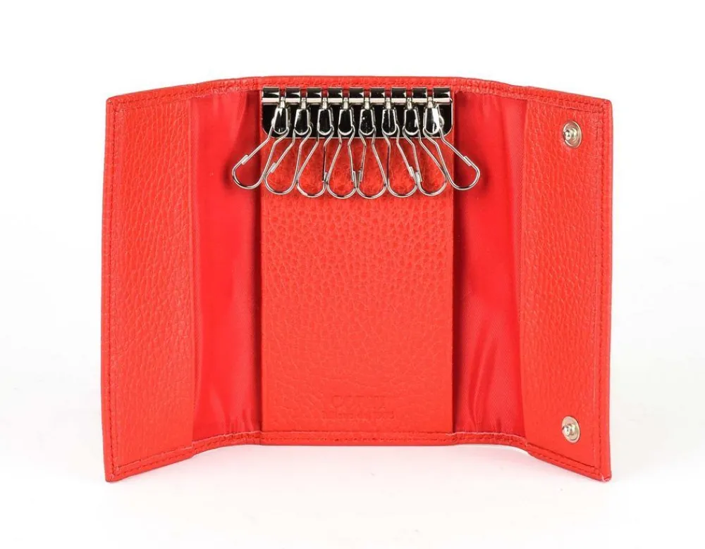 Portachiavi 8 ganci Gianfranco Corti Wild 8882. Realizzato in vera pelle pieno fiore, conciata al vegetale. Tasca principale chiusa da bottone, 8 ampi ganci metallici. Logo Corti frontale.