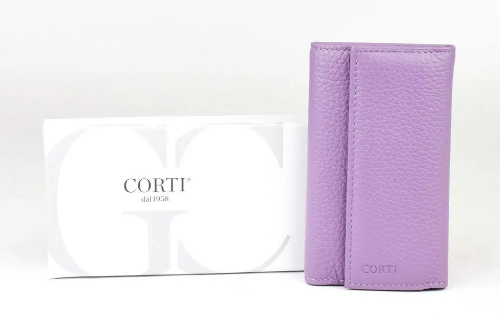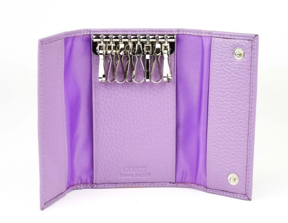 Portachiavi 8 ganci Gianfranco Corti Wild 8882. Realizzato in vera pelle pieno fiore, conciata al vegetale. Tasca principale chiusa da bottone, 8 ampi ganci metallici. Logo Corti frontale.