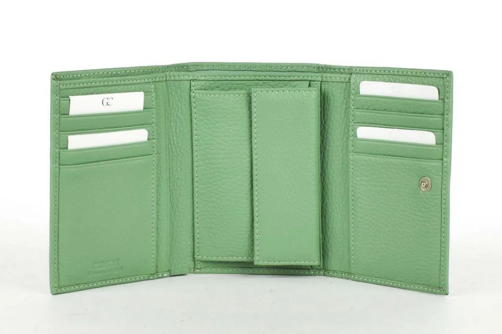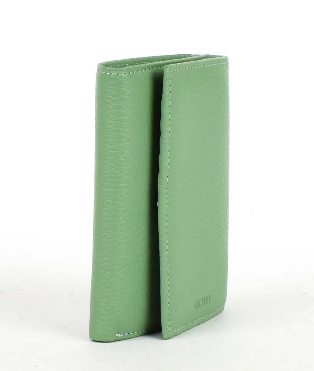 Portafoglio donna Gianfranco Corti Alce 8868. Portafoglio realizzato in vera pelle di vitello pieno fiore, conciato in Italia. Organizzato internamente con portadocumenti, portacarte di credito, tasca portamonete e vano porta banconote. Logo Corti frontale.