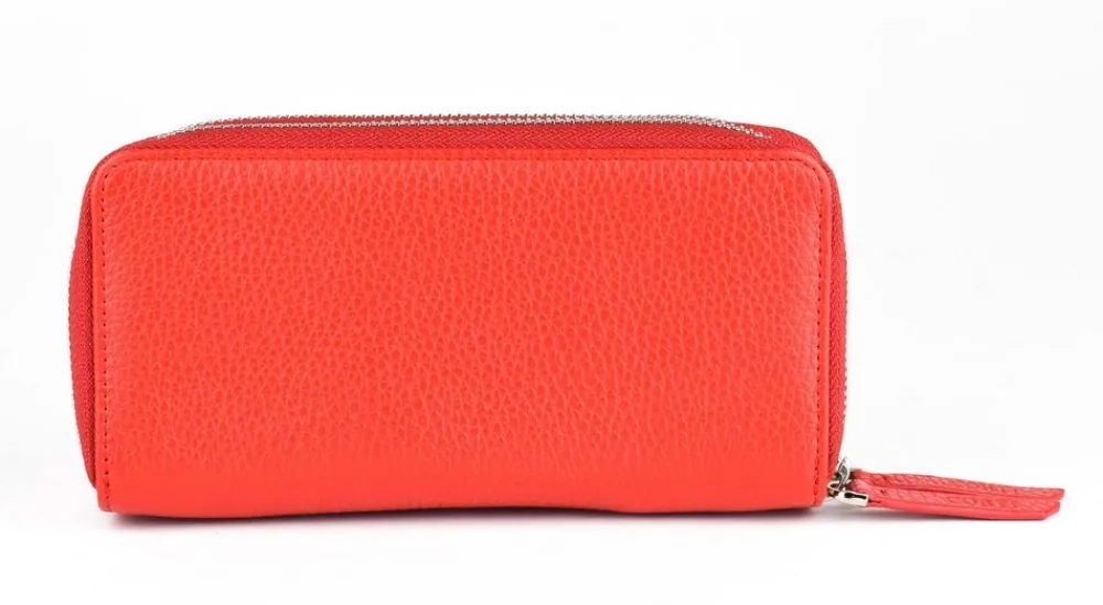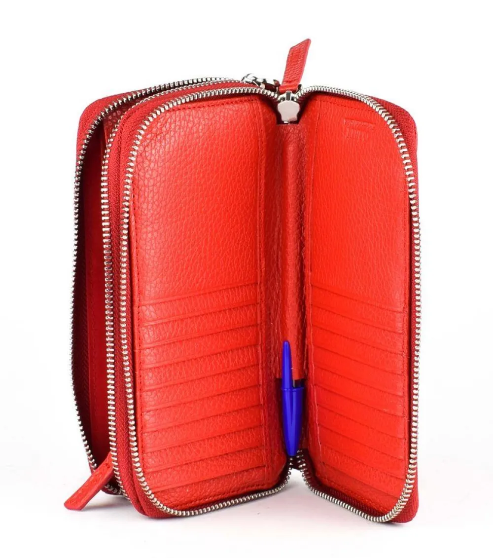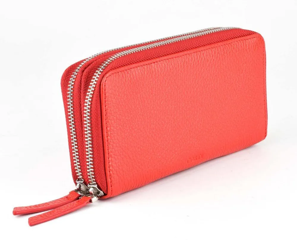 Portafoglio donna due zip Gianfranco Corti Alce 8877. Portafoglio realizzato in vera pelle di vitello pieno fiore, conciato in Italia. Due ampie tasche principali chiuse da zip.Organizzato internamente con portadocumenti, portacarte di credito, tasca portamonete, vano porta banconote e tasca porta penna. Logo Corti frontale.