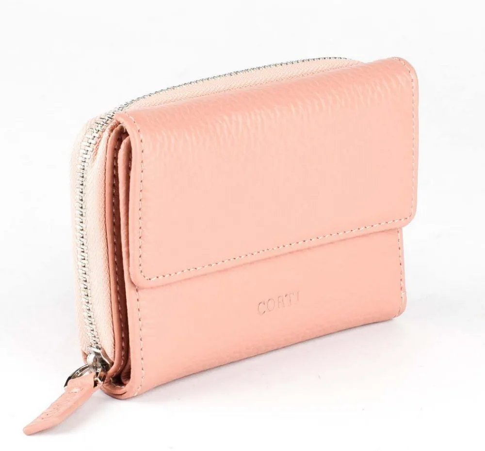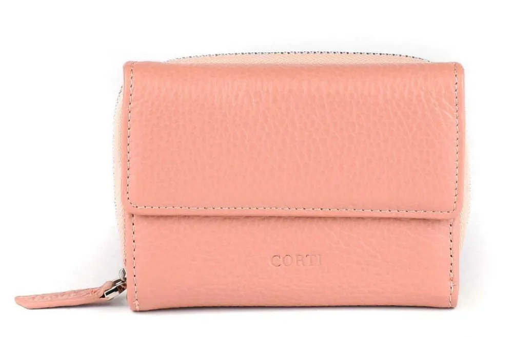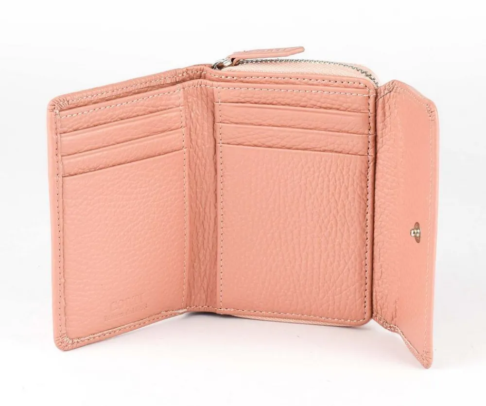 Portafoglio donna piccolo Gianfranco Corti Alce 8875. Portafoglio realizzato in vera pelle di vitello pieno fiore, conciato in Italia. Organizzato internamente con portadocumenti, portacarte di credito e vano porta banconote. Ampia tasca portamonete esterna chiusa da zip. Logo Corti frontale.