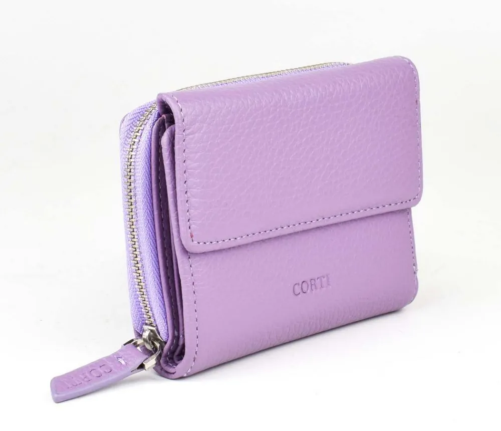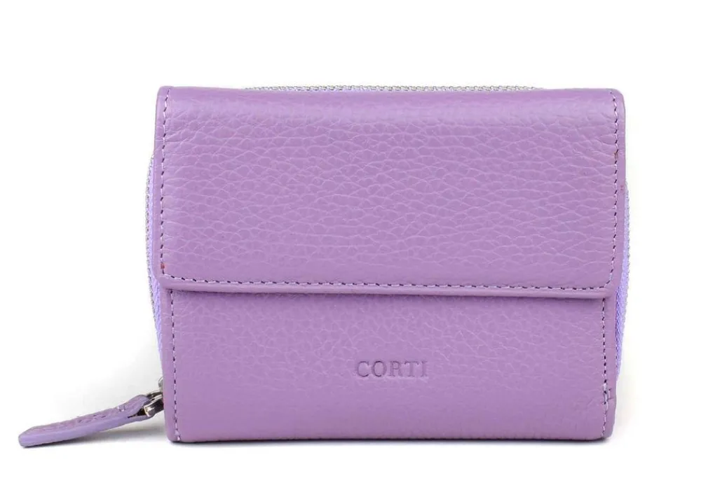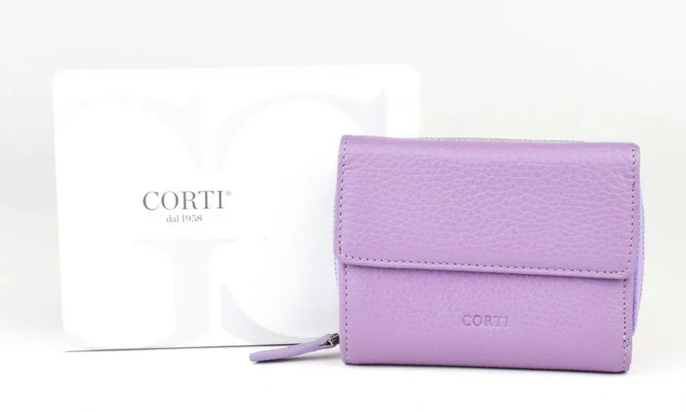 Portafoglio donna piccolo Gianfranco Corti Alce 8875. Portafoglio realizzato in vera pelle di vitello pieno fiore, conciato in Italia. Organizzato internamente con portadocumenti, portacarte di credito e vano porta banconote. Ampia tasca portamonete esterna chiusa da zip. Logo Corti frontale.