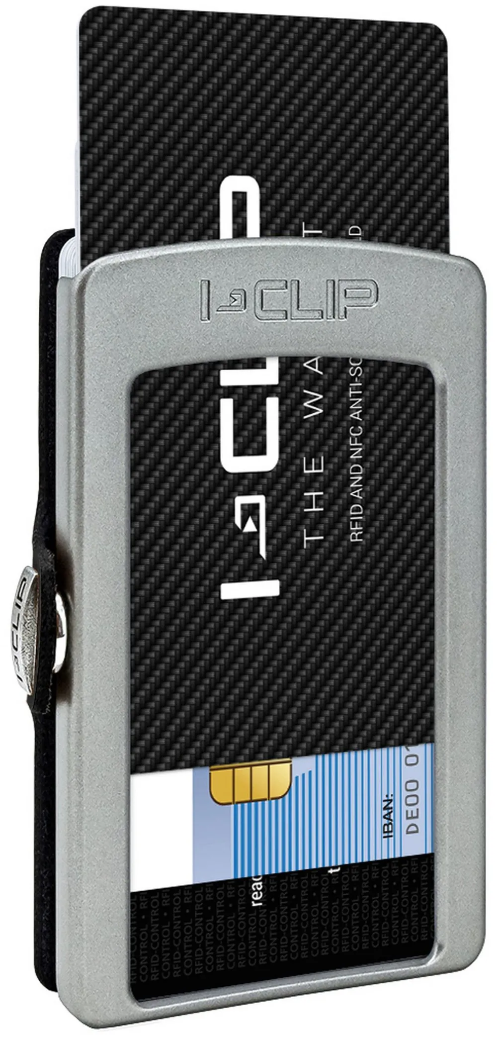 Il set di schede blocco RFID di I-CLIP, composto da due carte, protegge fino a 10 carte di credito, bancarie, CE e ID che si trovano tra le due carte di protezione RFID. Le carte che si trovano al di fuori delle due carte possono comunque essere lette come al solito (come le tessere di trasporti pubblici, che possono essere lette senza estrarle dal portafoglio)