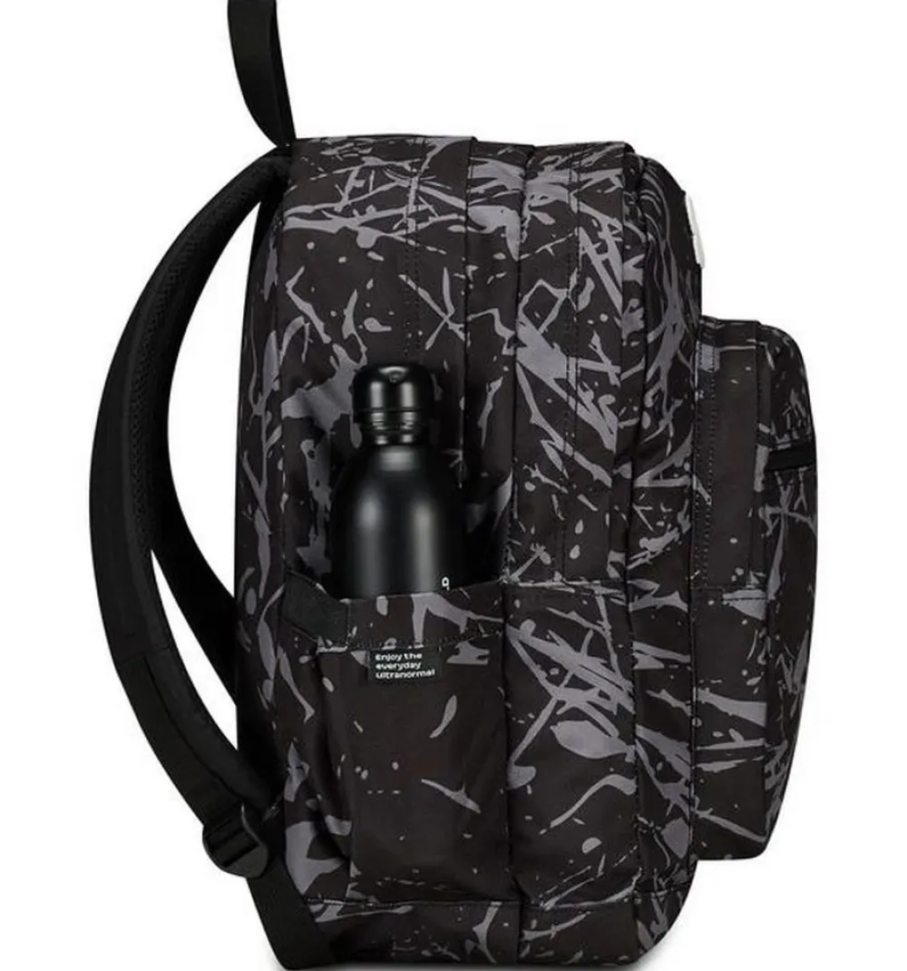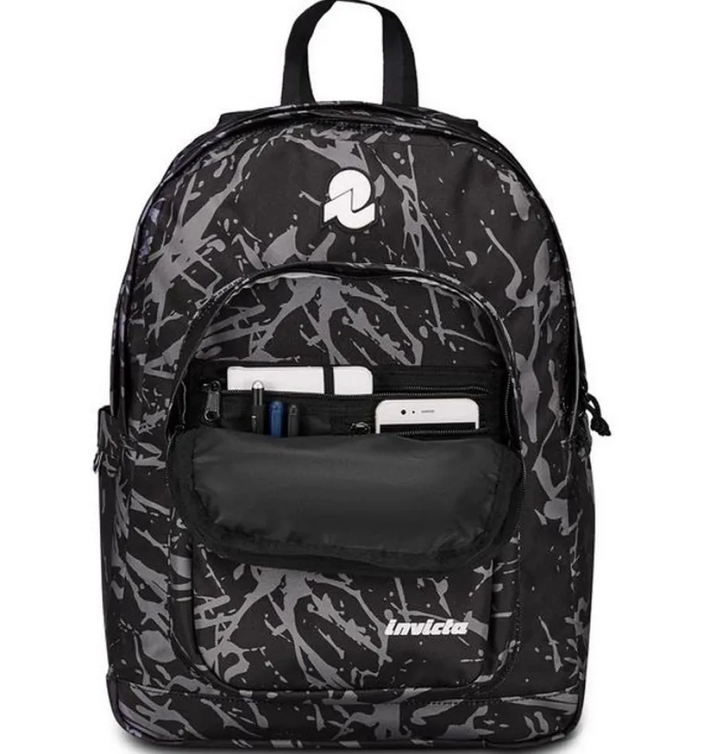 Zaino Invicta Jelek. Zaino realizzato in robusto poliestere riciclato, due ampie tasche principali chiuse da zip, schienale imbottito e traspirante, spallacci gommati e sagomati. Ampia tasca frontale e tasche laterali, per bottiglia e ombrello. Vani interno porta laptop. Garanzia 2 anni.