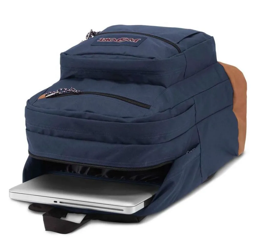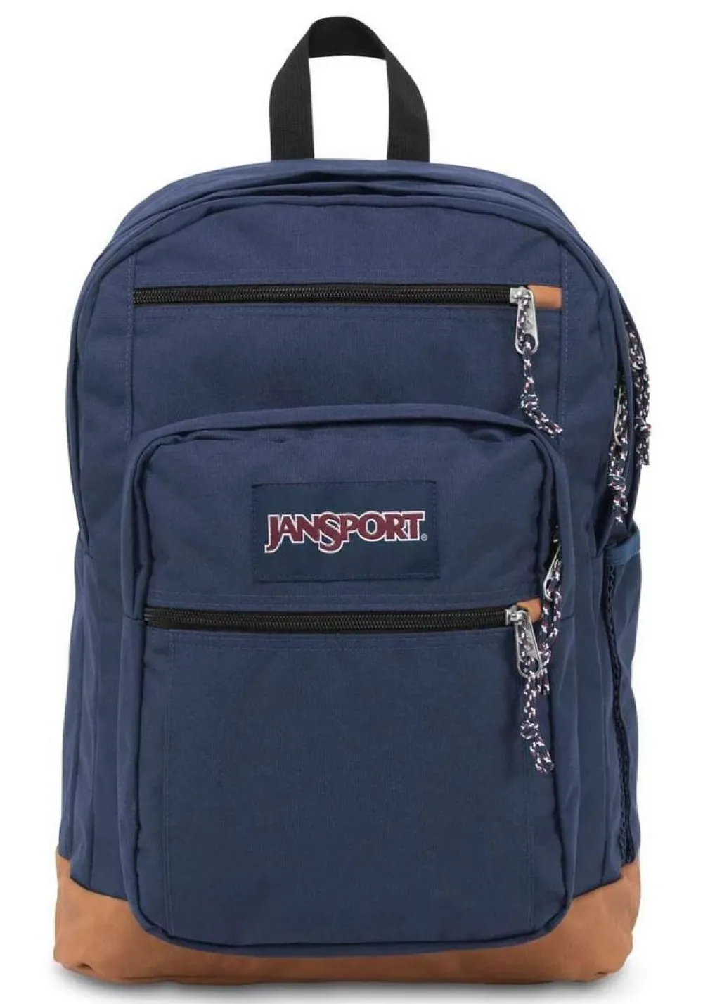 Zaino Jansport Cool Student. Realizzato in robusto poliestere con fondo in pelle sintetica. Due ampi scomparti principali comodamente accessibili dalle zip superiori e tasca frontale chiusa da lampo. Tasca interna gommata per pc 15″. Gli spallacci e lo schienale sono imbottiti per garantire il massimo confort. Garanzia internazionale 30 anni.