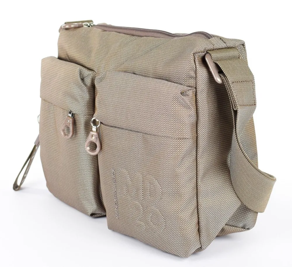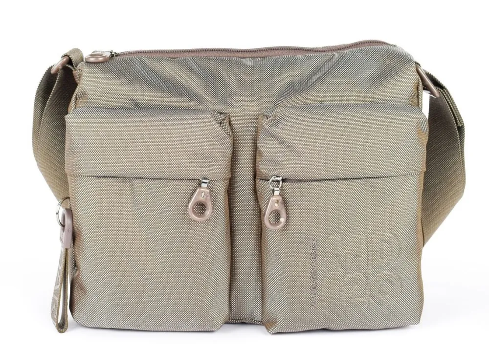 Borsa a spalla zaino Mandarina Duck MD20 MT09. Borsa realizzata in robusto poliestere, ampia tasca principale chiusa da zip, organizzazione interna con tasche per piccoli oggetti, tasca chiusa da zip. Tasca frontale. Possibilità di portare la borsa a spalla o come zaino.