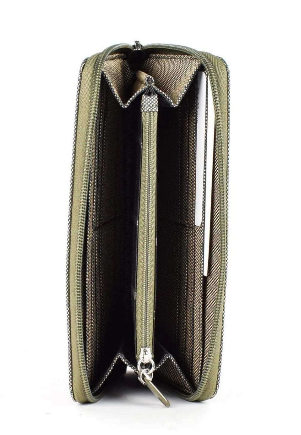 Portafoglio donna con zip Mandarina Duck MD20 MPN1. Portafoglio realizzato in poliestere di alta qualità Mitrix. Ampia tasca principale chiusa da zip, con vano banconote e documenti interno. Tasca portamonete chiusa da zip. Logo Mandarina Duck frontale.