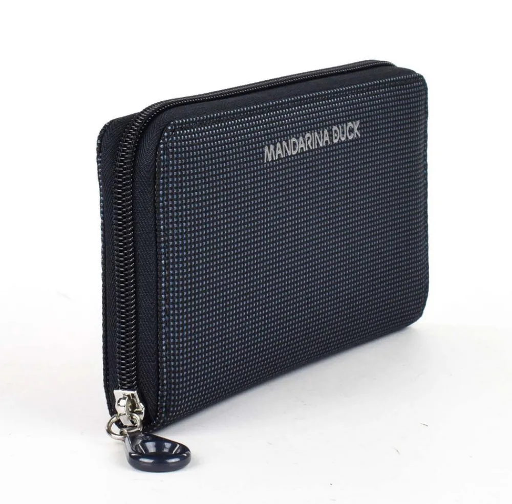 Portafoglio donna con zip Mandarina Duck MD20 MPN1. Portafoglio realizzato in poliestere di alta qualità Mitrix. Ampia tasca principale chiusa da zip, con vano banconote e documenti interno. Tasca portamonete chiusa da zip. Logo Mandarina Duck frontale.