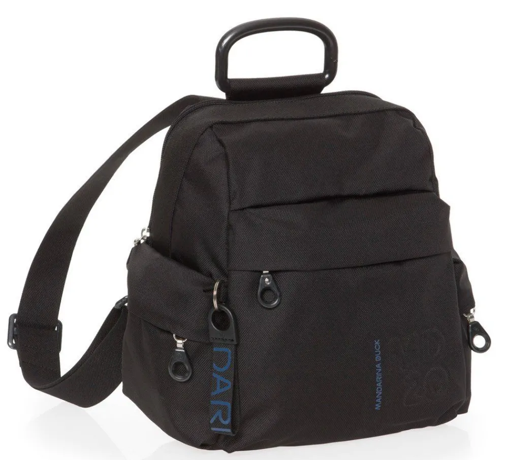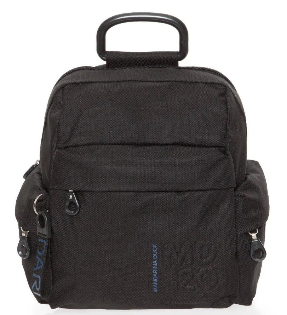 Zaino donna Mandarina Duck MD20 MTZ4. Zaino realizzato in robusto poliestere mitrix, materiale distintivo del marchio Mandarina Duck. Ampia tasca principale chiusa da zip, organizzazione interna con tasche per piccoli oggetti. Tasche frontali. Portachiavi incluso. Spallacci regolabili in lunghezza. Maniglia superiore rigida.
