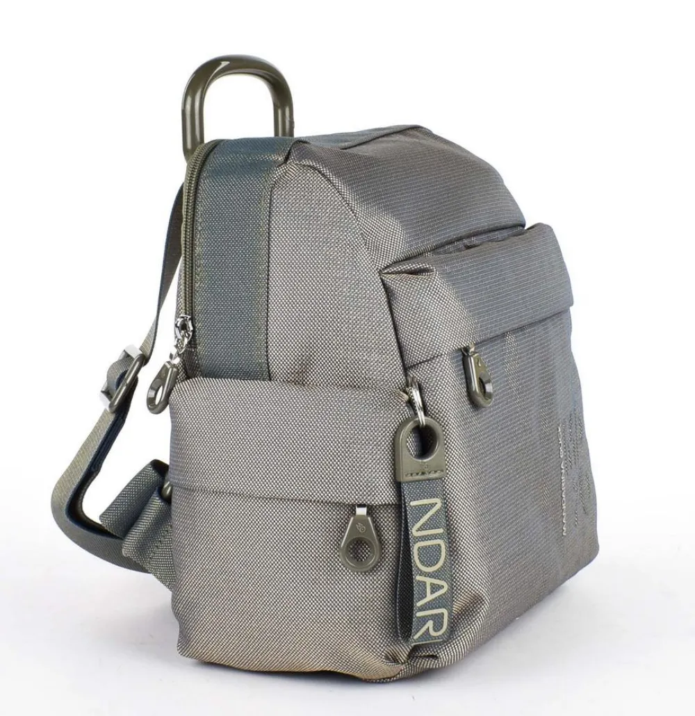 Zaino donna Mandarina Duck MD20 MTT1. Zaino realizzato in robusto poliestere mitrix, materiale distintivo del marchio Mandarina Duck. Ampia tasca principale chiusa da zip, organizzazione interna con tasche per piccoli oggetti. Tasca frontale e laterali. Portachiavi incluso. Spallacci regolabili in lunghezza. Maniglia superiore rigida.