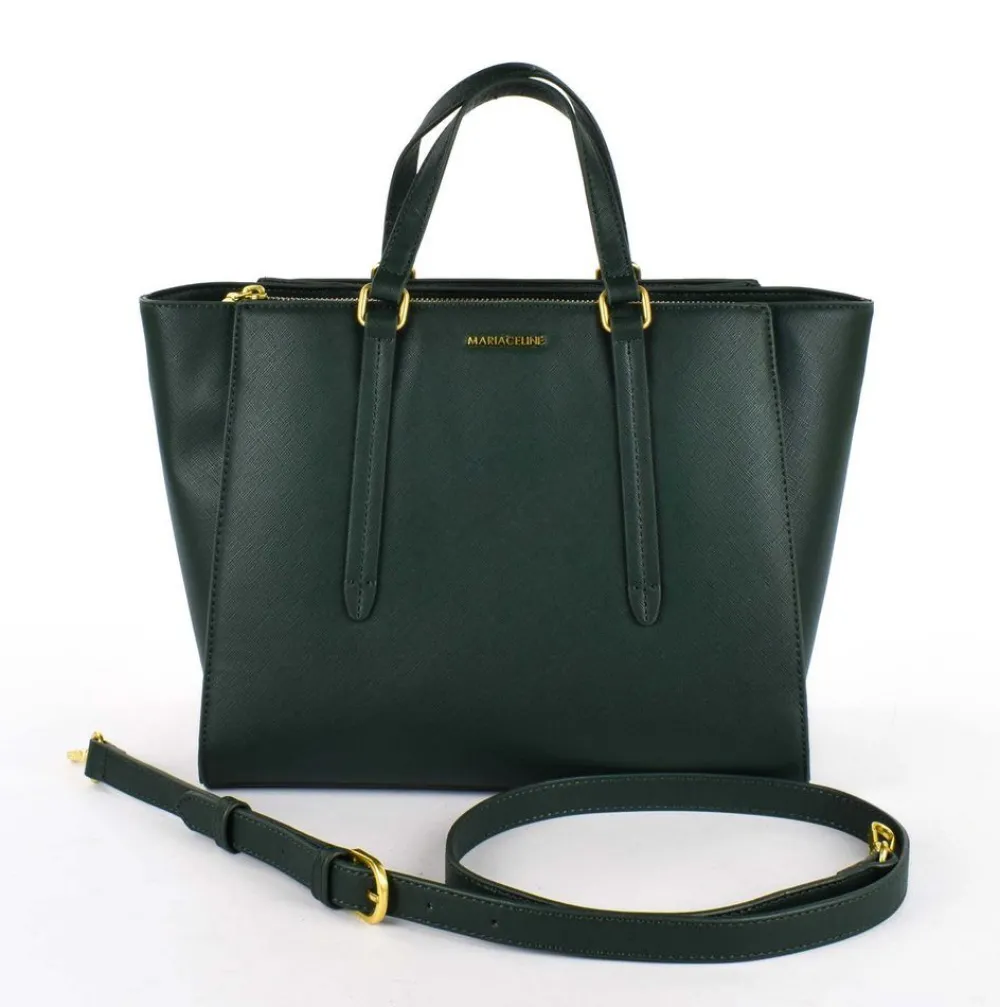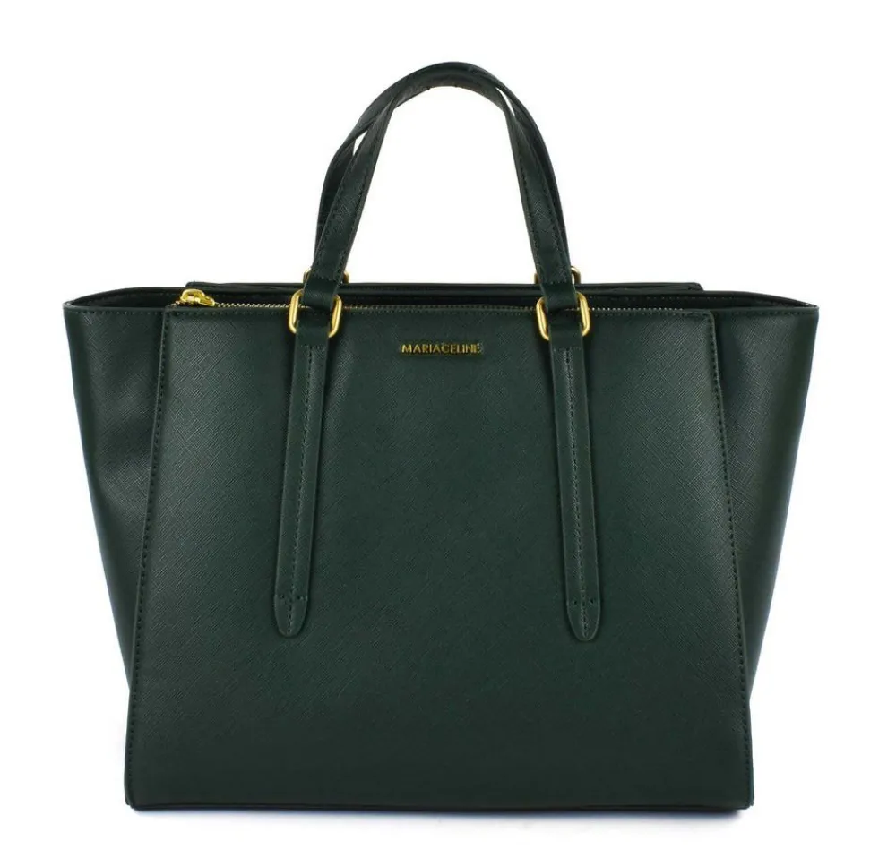 Borsa a mano e tracolla Maria Celine Julie 02. Borsa due manici realizzata in robusto materiale sintetico. Ampia tripla tasca principale chiusa da zip e bottoni, tasca interna chiusa da zip e tasche per piccoli oggetti. Tracolla amovibile.